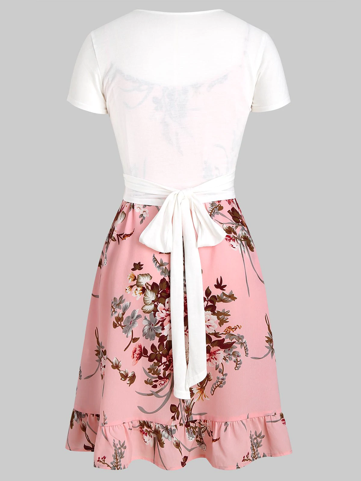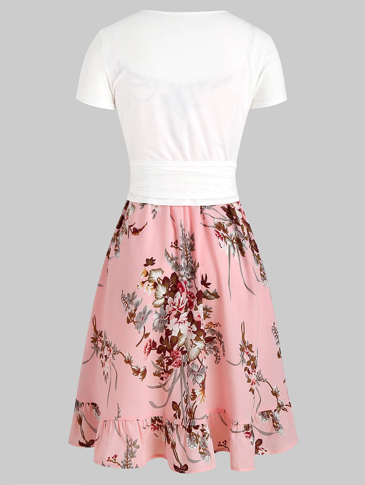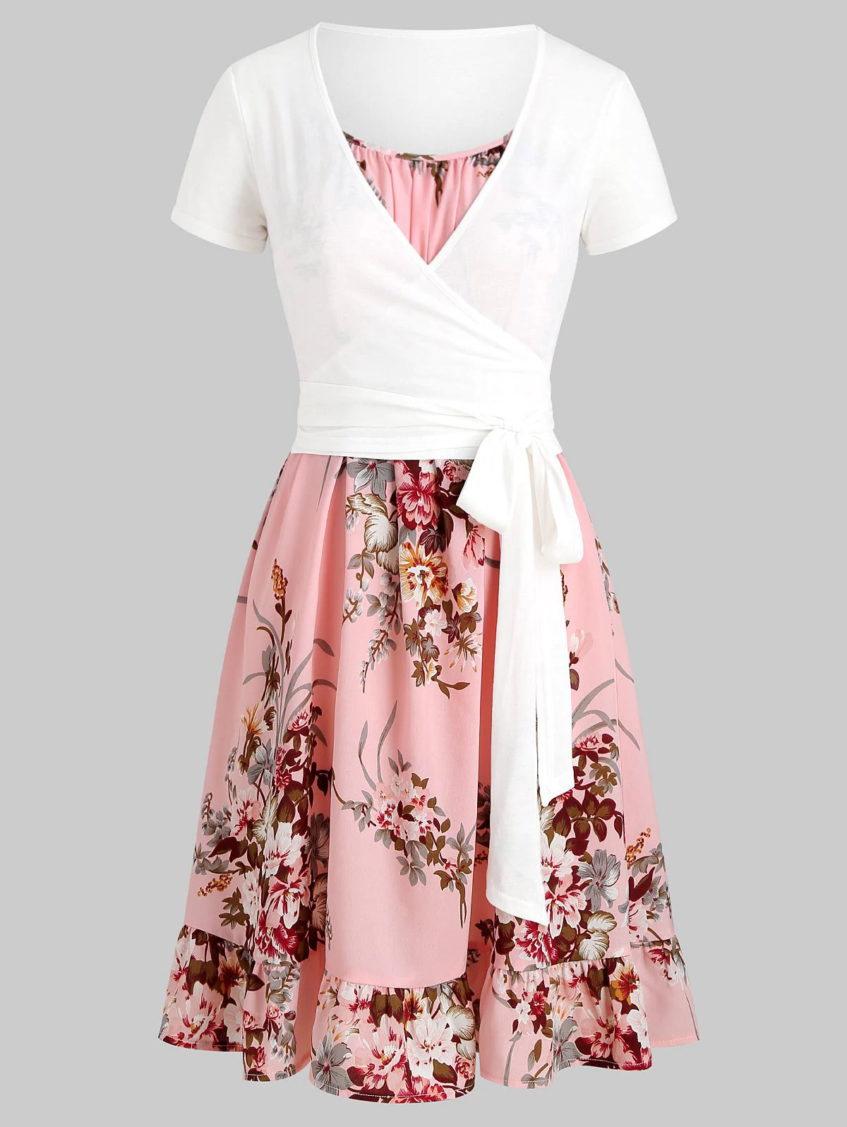 Plus Size Flower Cami Dress and Surplice T-shirt Set