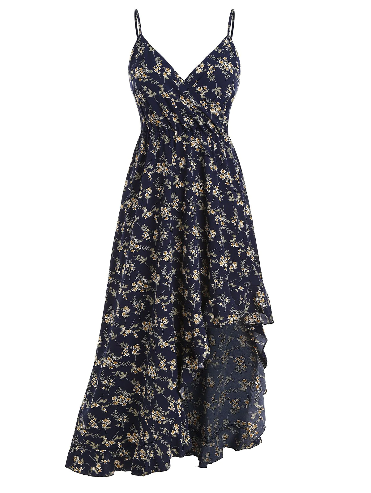 Floral Flounce Asymmetrical Surplice Cami Dress