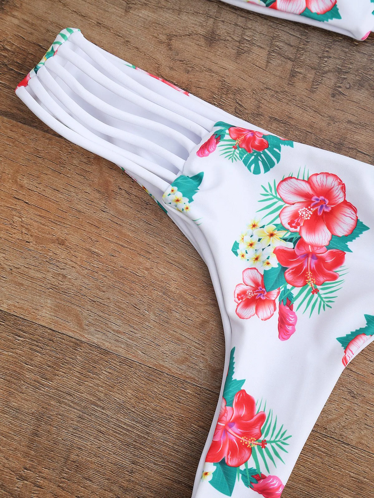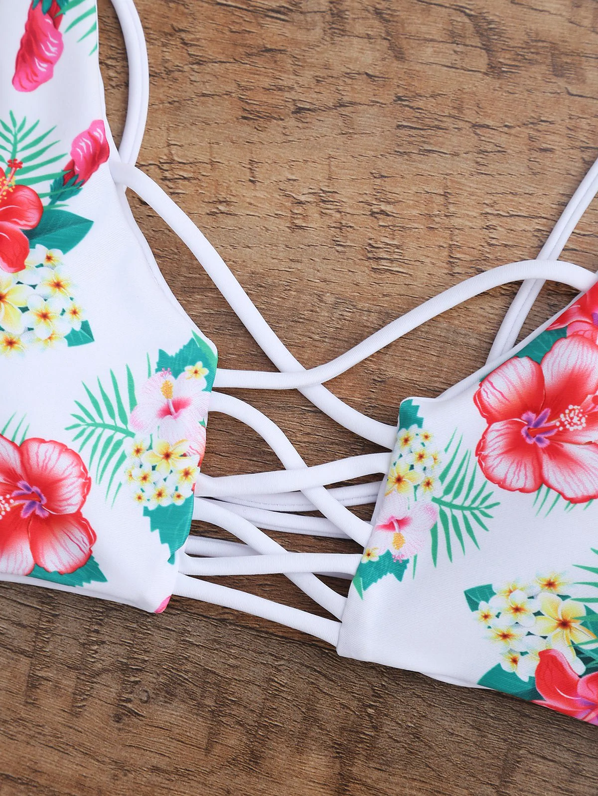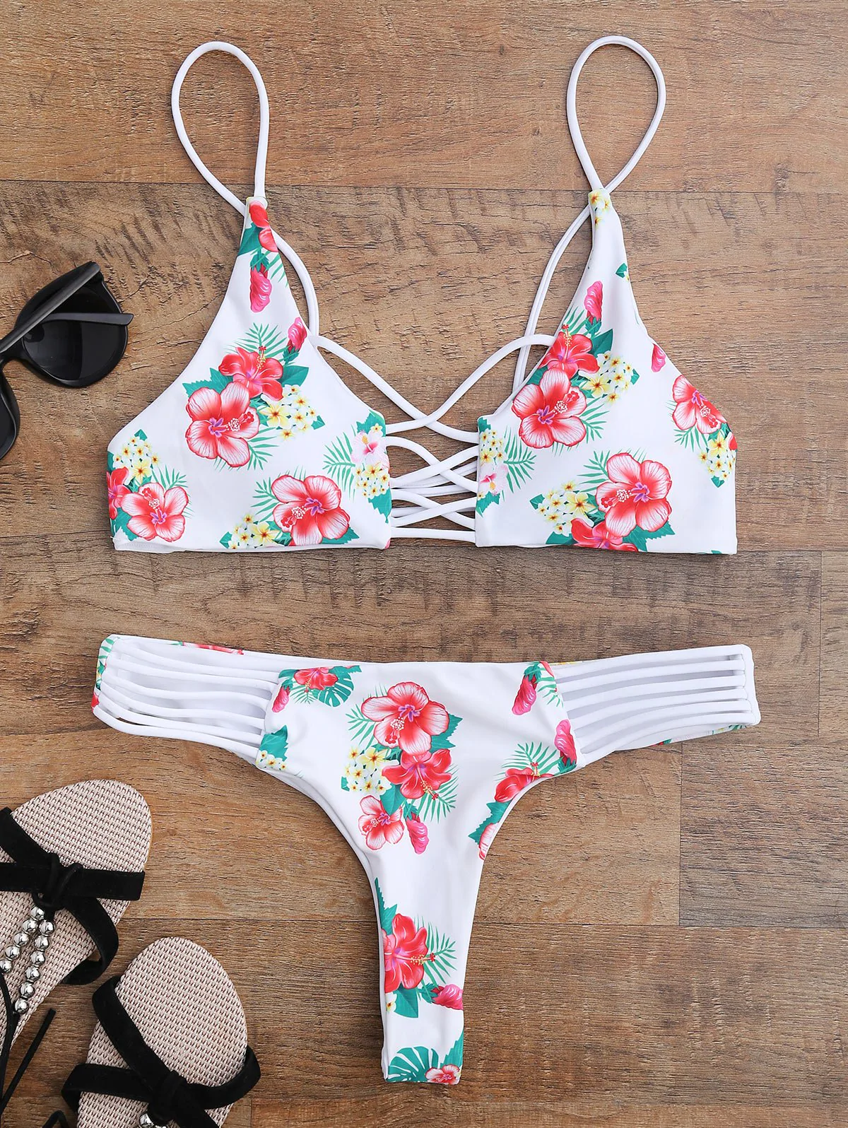 Floral Lace Up Strappy Bikini
