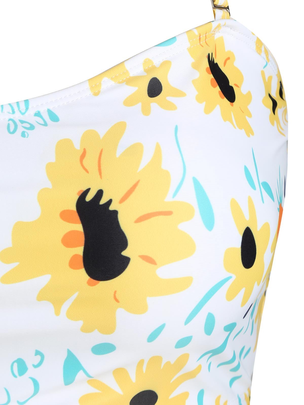 With a perfect combination of the pretty floral print and the retro-charming polka dot pattern for an appealing mix-and-match look, this plus size tankini set is a flattering outfit to make for a different beach look for this summer.