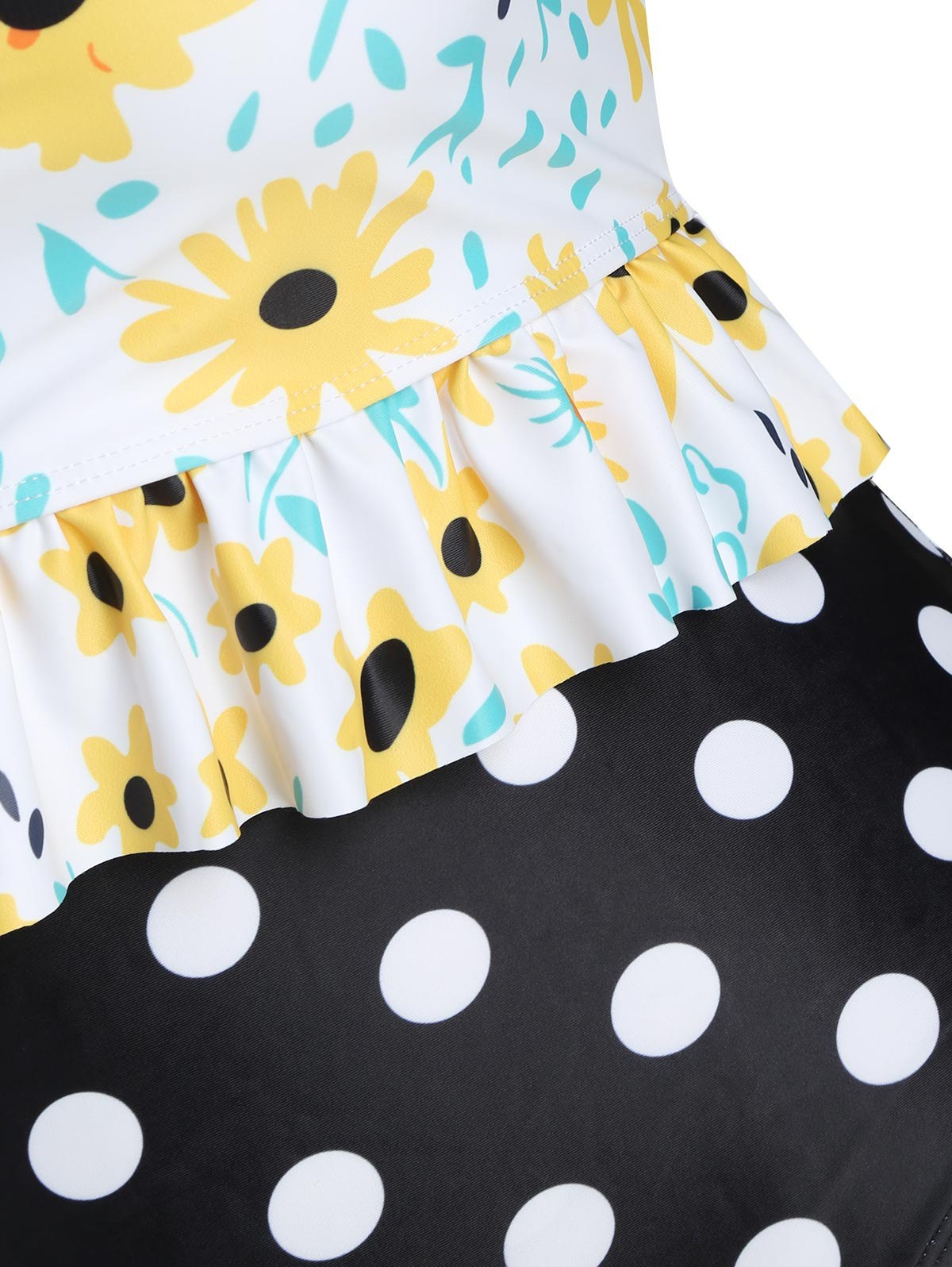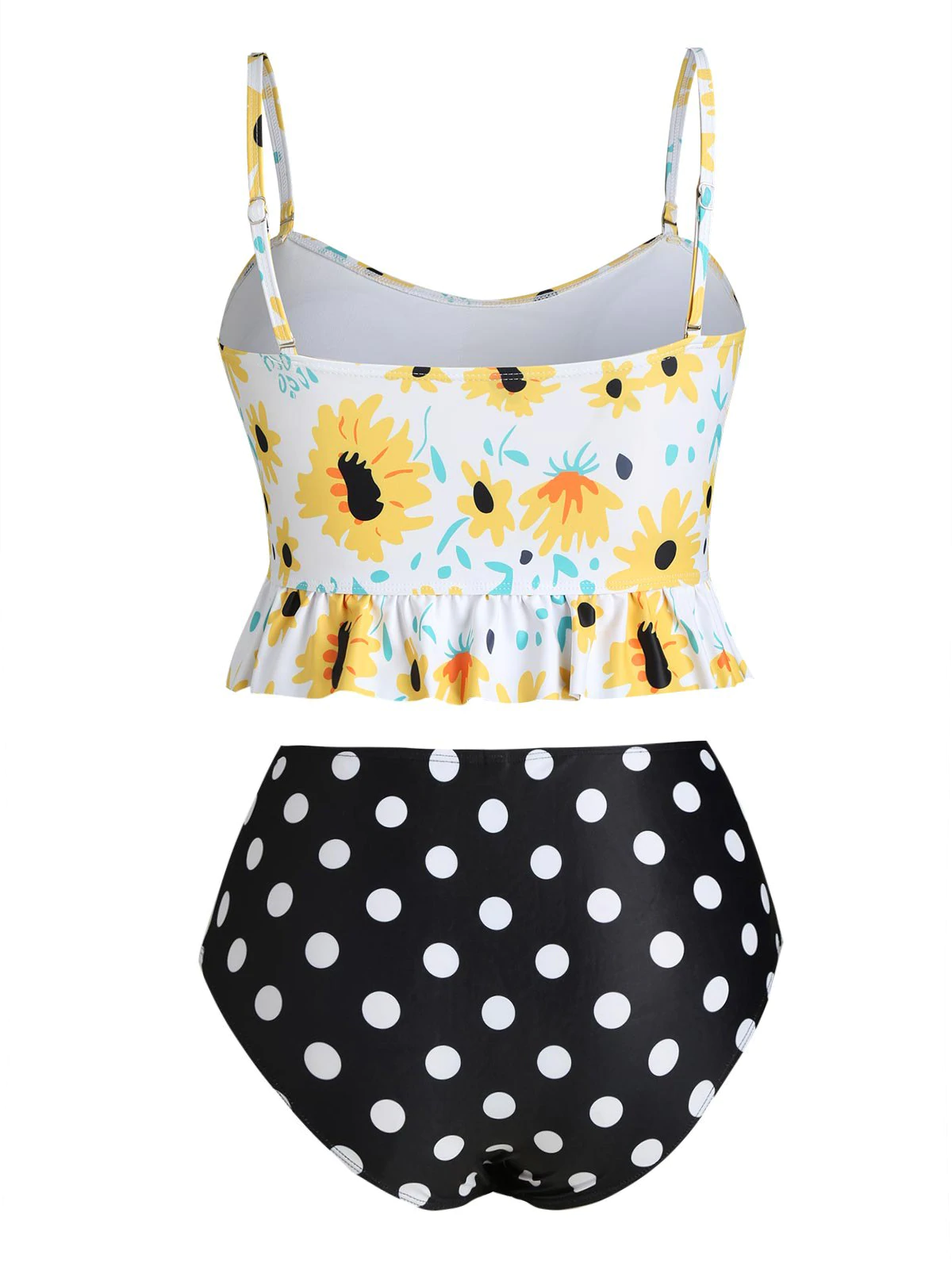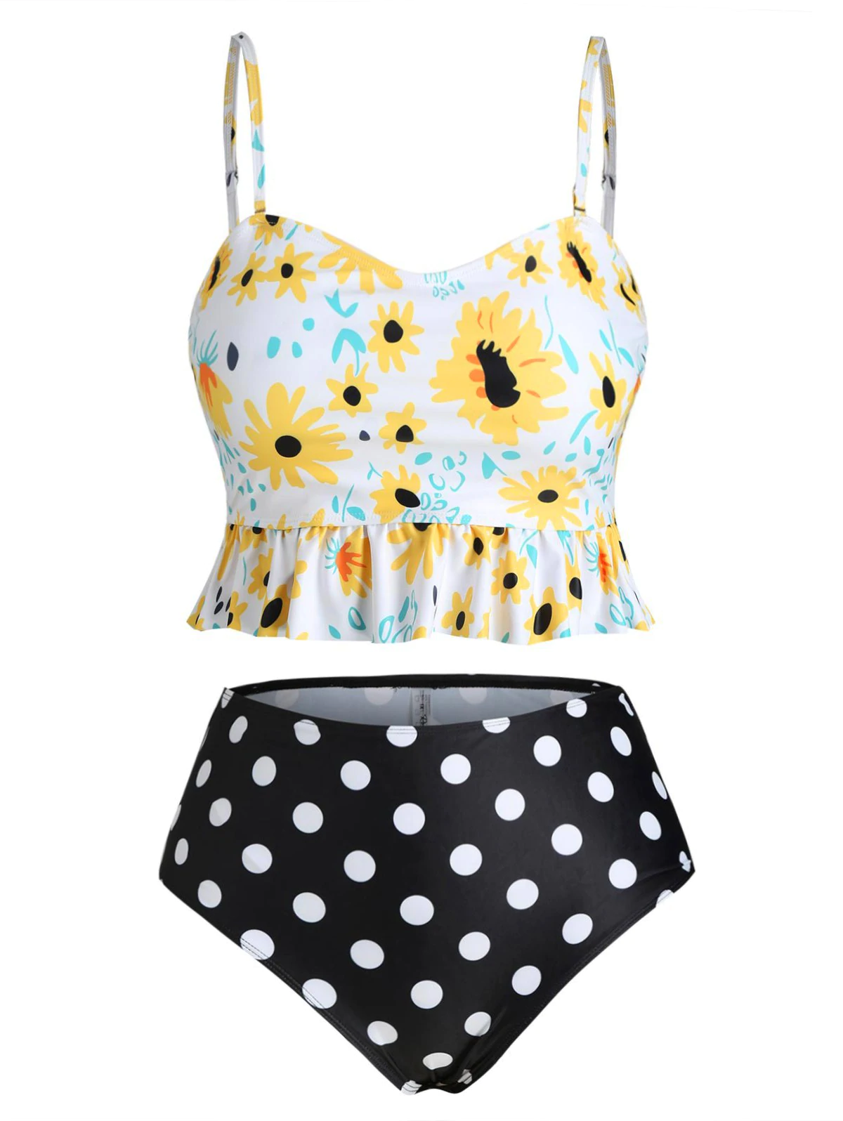 Floral Polka Dot Peplum Hem Plus Size Tankini Swimsuit