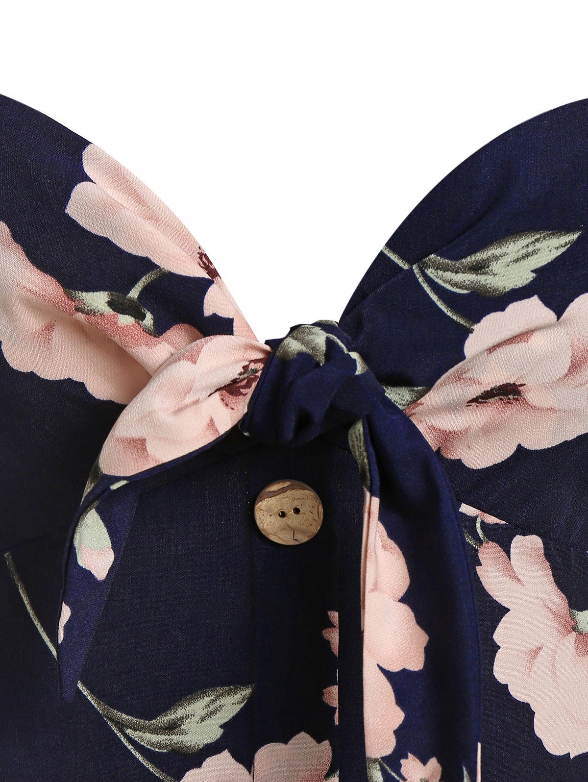 Flower Lace Insert Mock Button Bowknot Vintage Dress