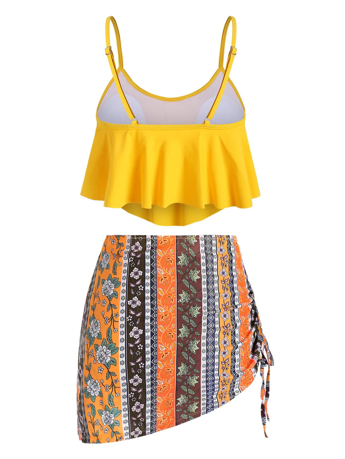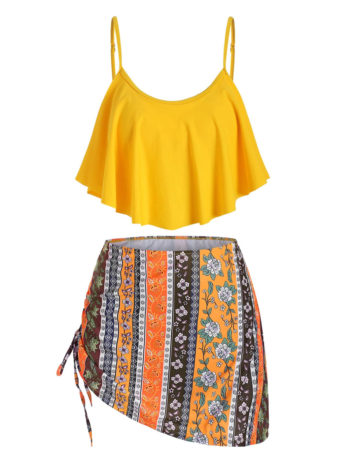 Floral Print Cinched Overlay Tankini Set