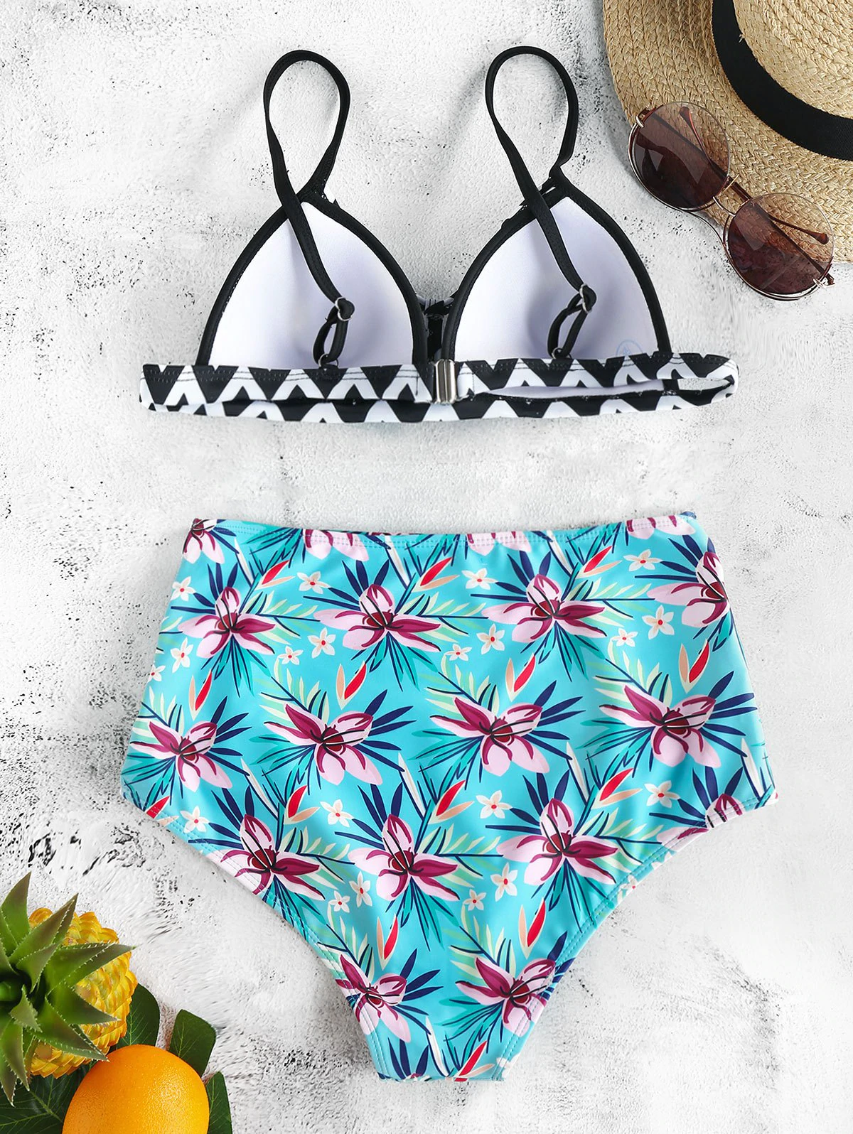 Floral Print Strappy Padded Bikini Set