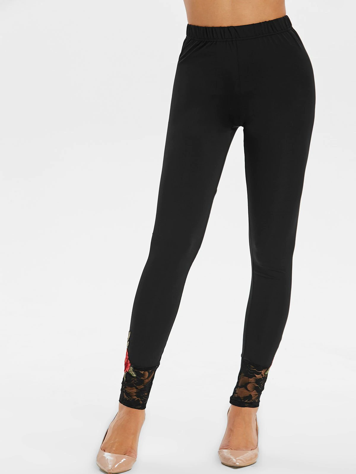 Flower Embroidered Lace Insert Skinny Leggings