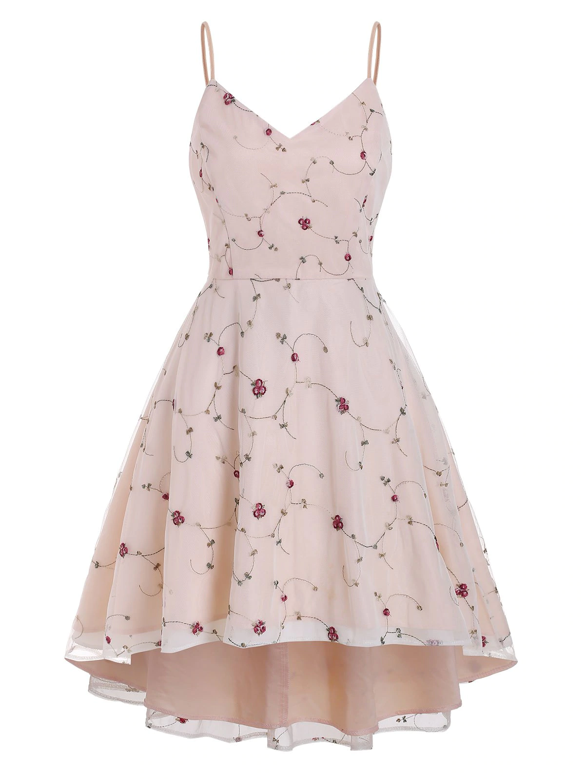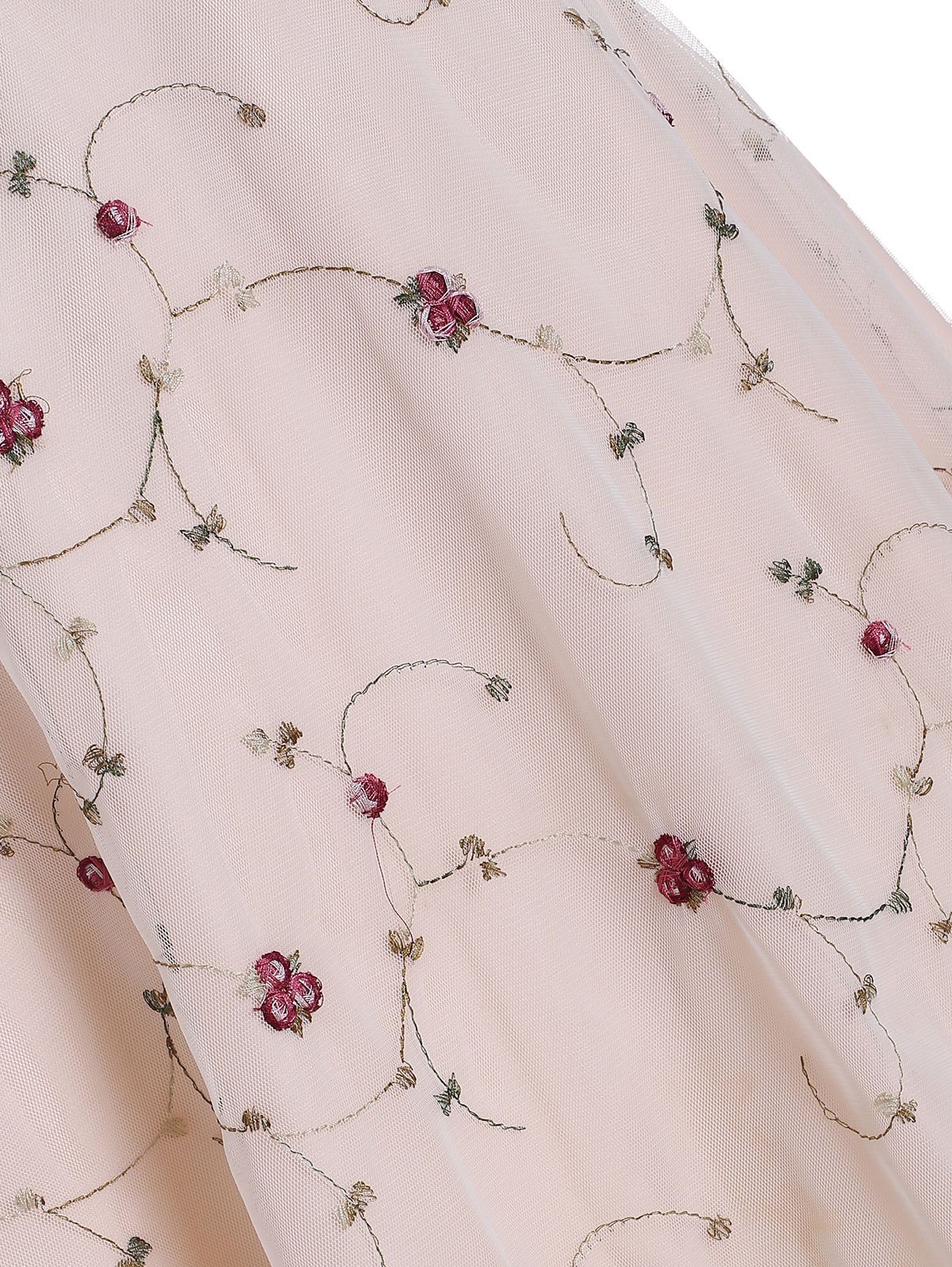 Flower Lace Insert Mock Button Bowknot Vintage Dress