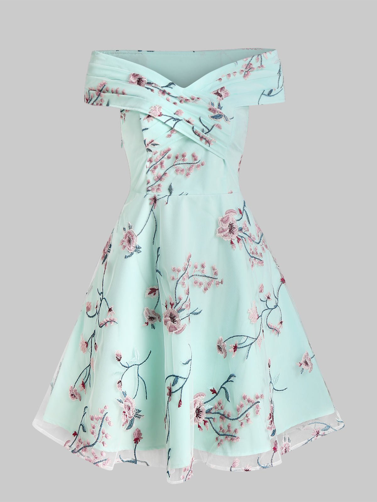 Flower Embroidered Off The Shoulder Skater Dress