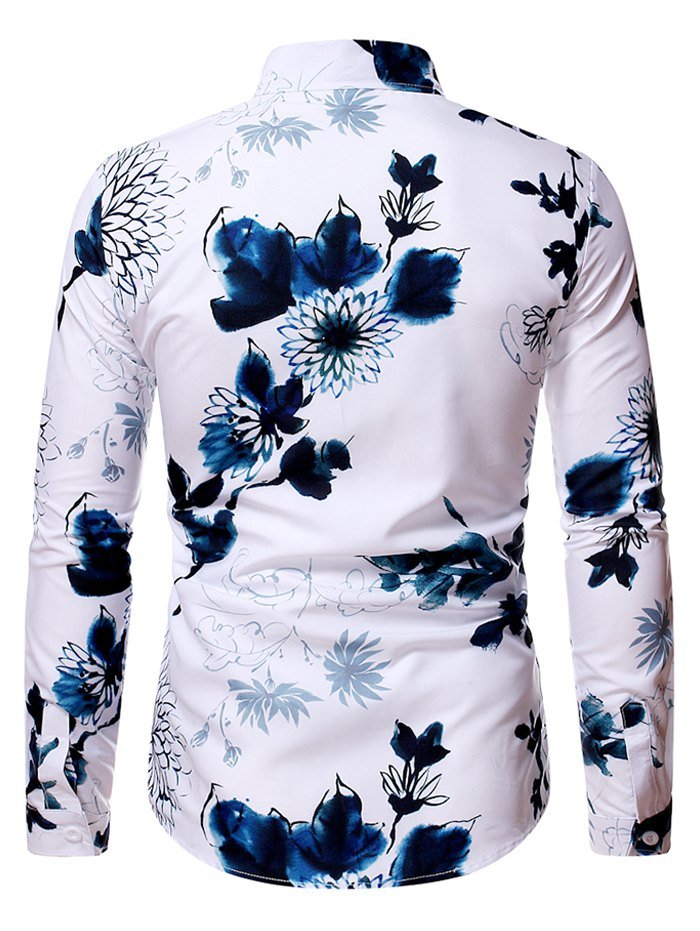 Flower Ink Painting Print Casual Shirt