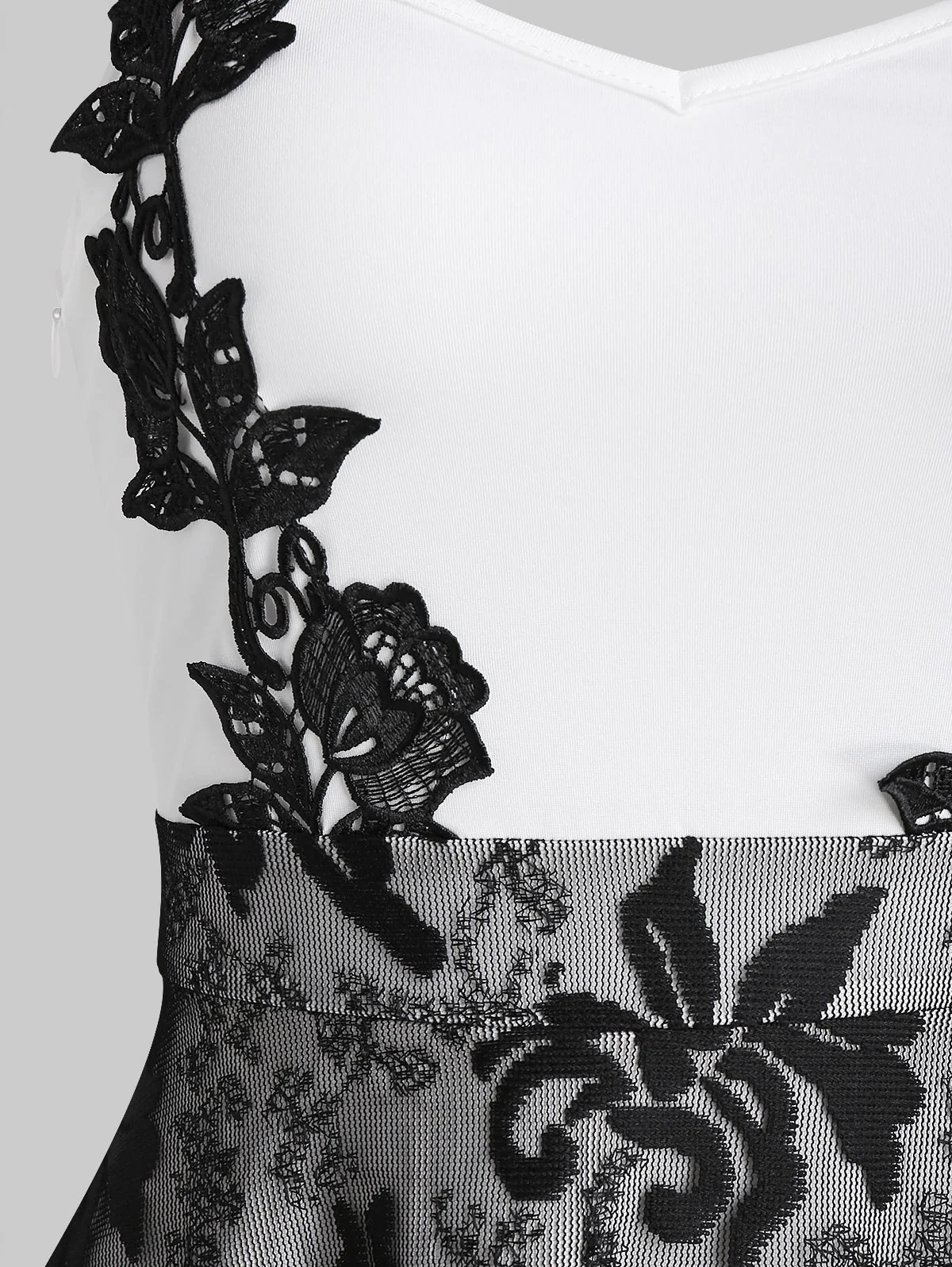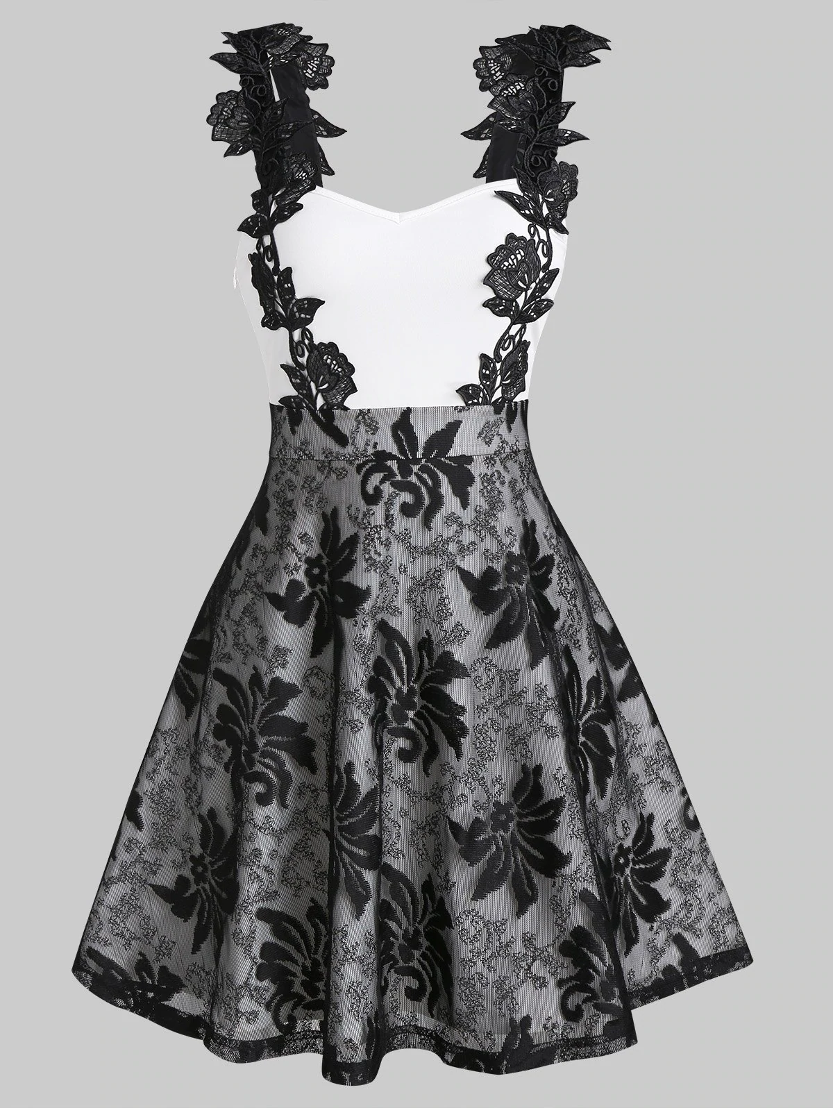 Flower Lace Insert Mock Button Bowknot Vintage Dress