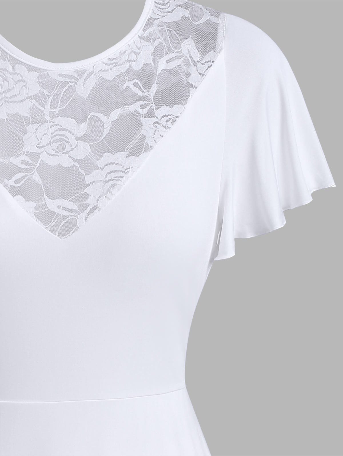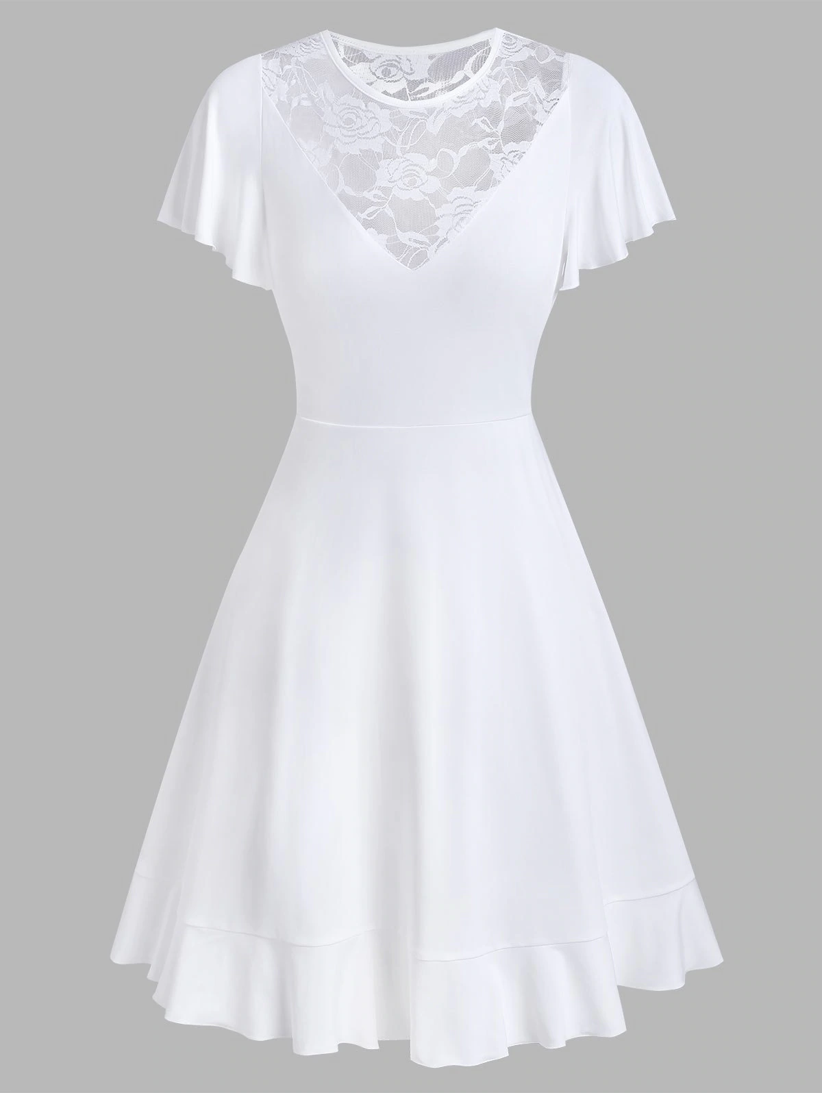 Flower Lace Insert Short Sleeve Flare Dress