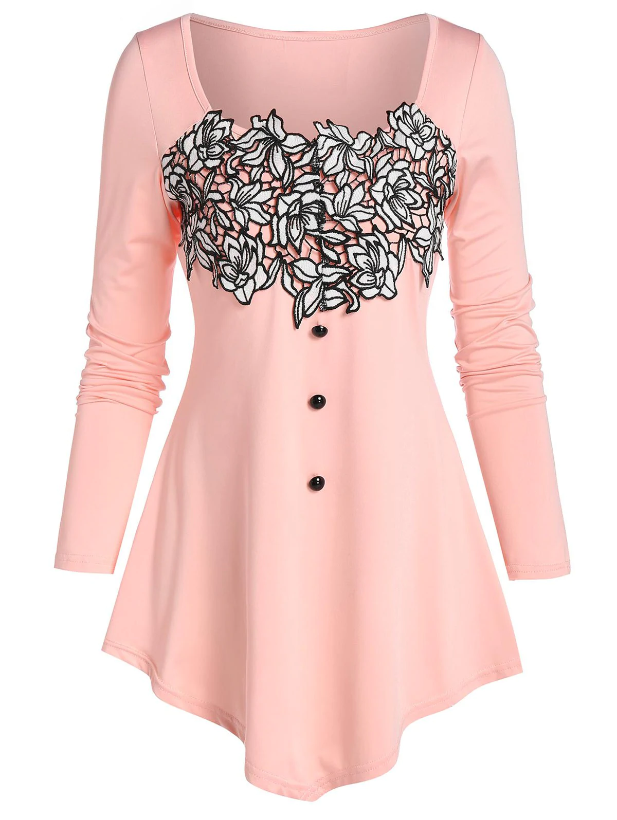 Flower Lace Panel Pointed Hem T-shirt