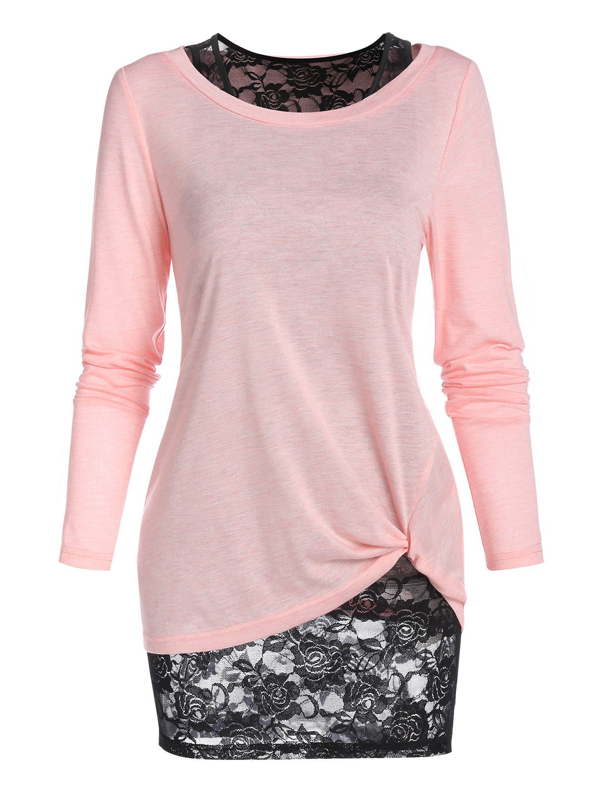 Flower Lace Tank Top and Long Sleeve Twisted T-shirt