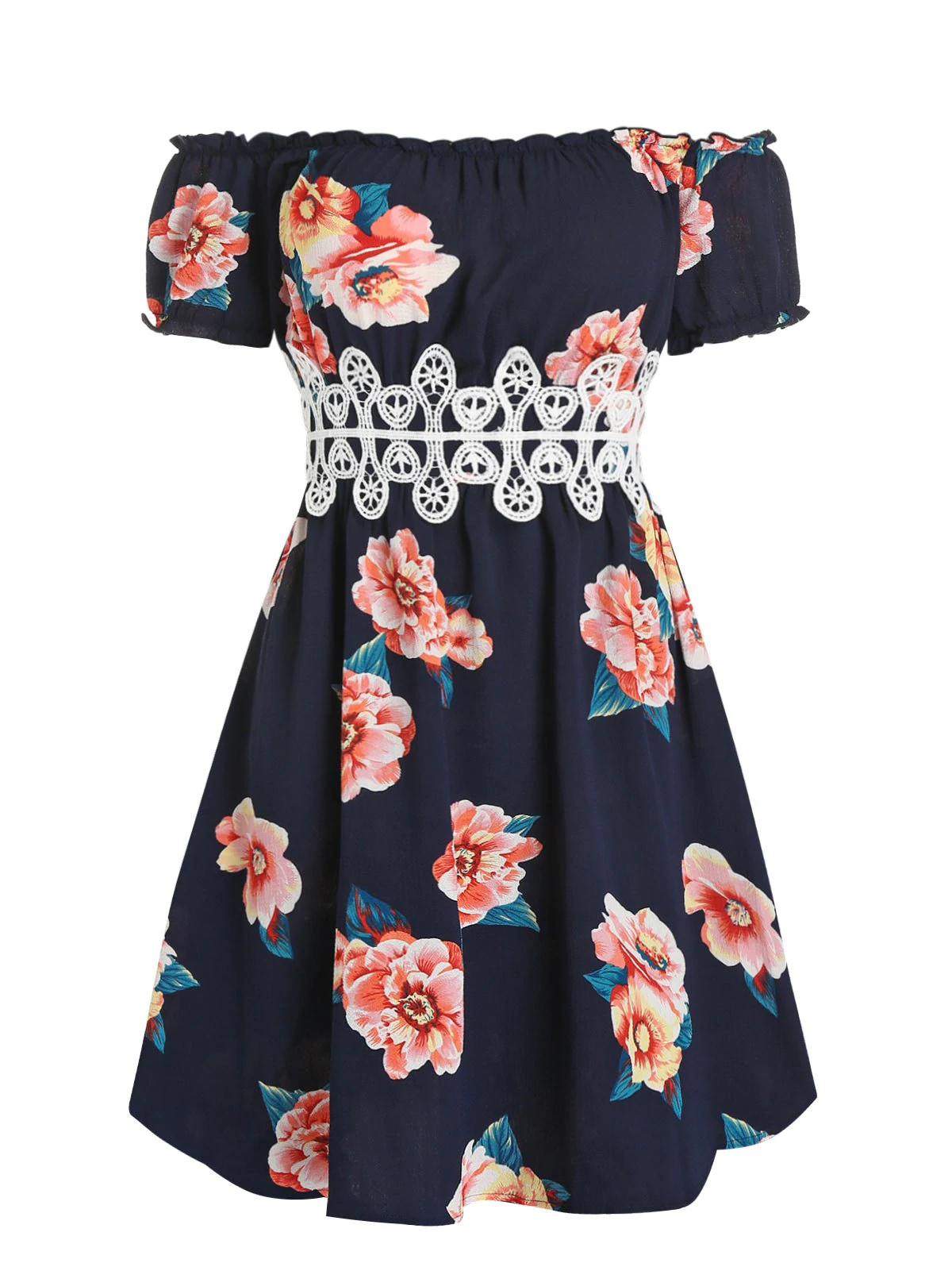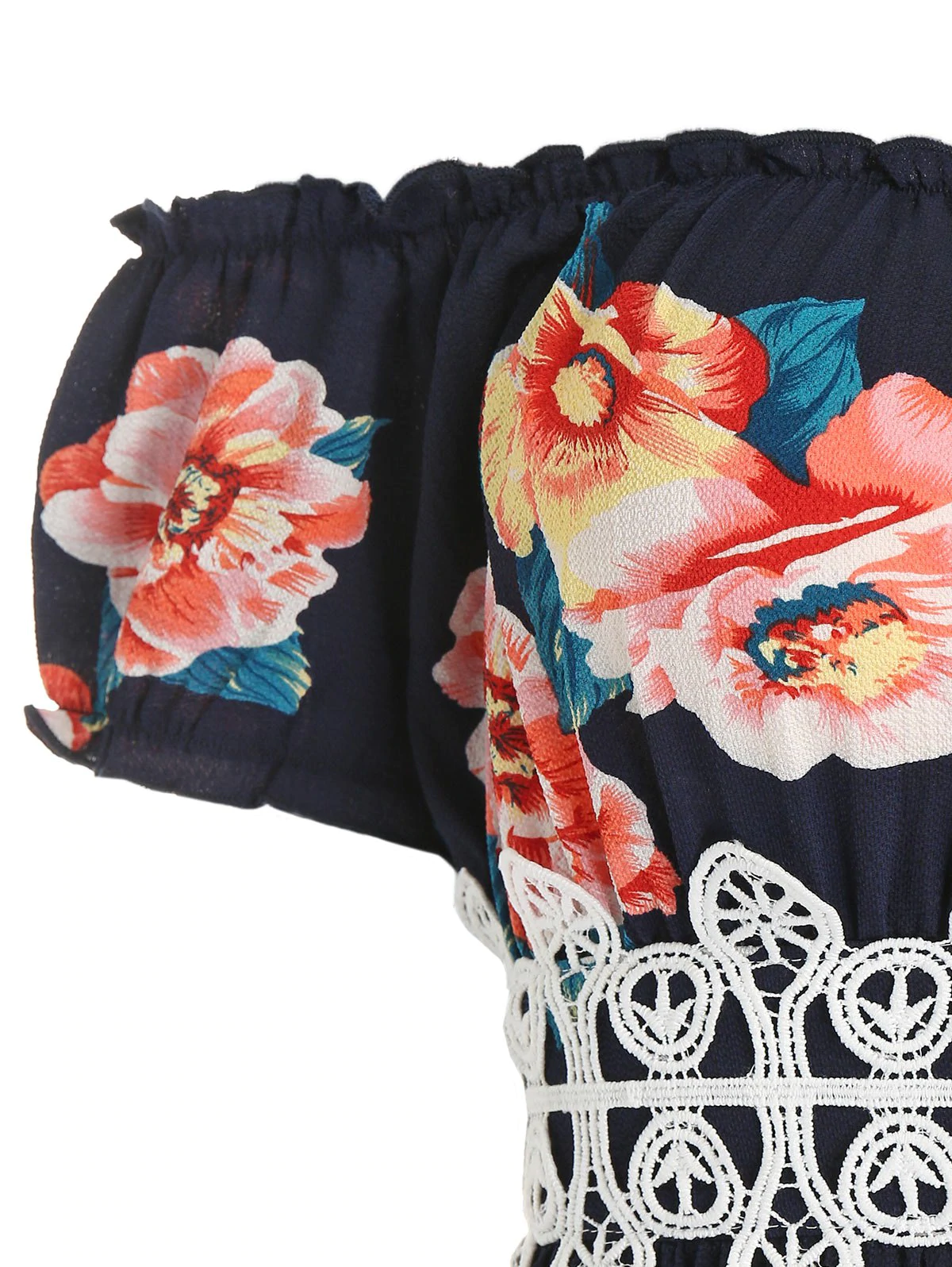 Plus Size Cold Shoulder Ruffle Floral Print Dress