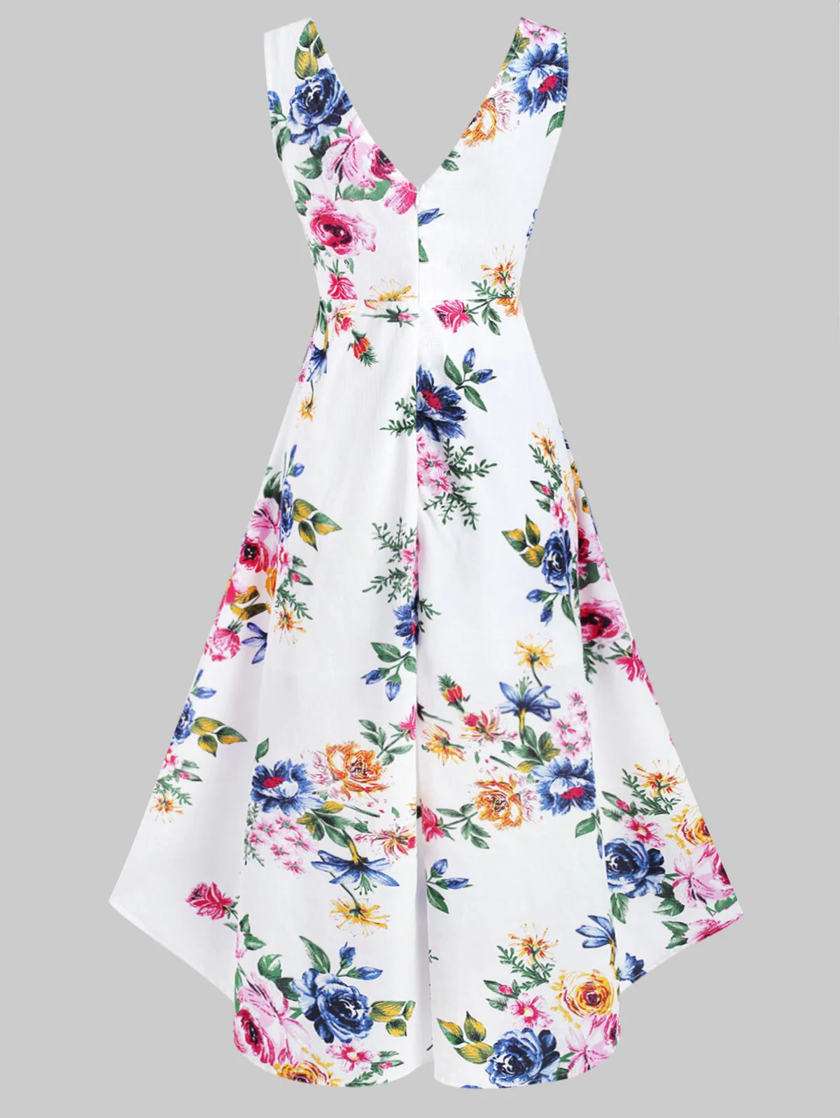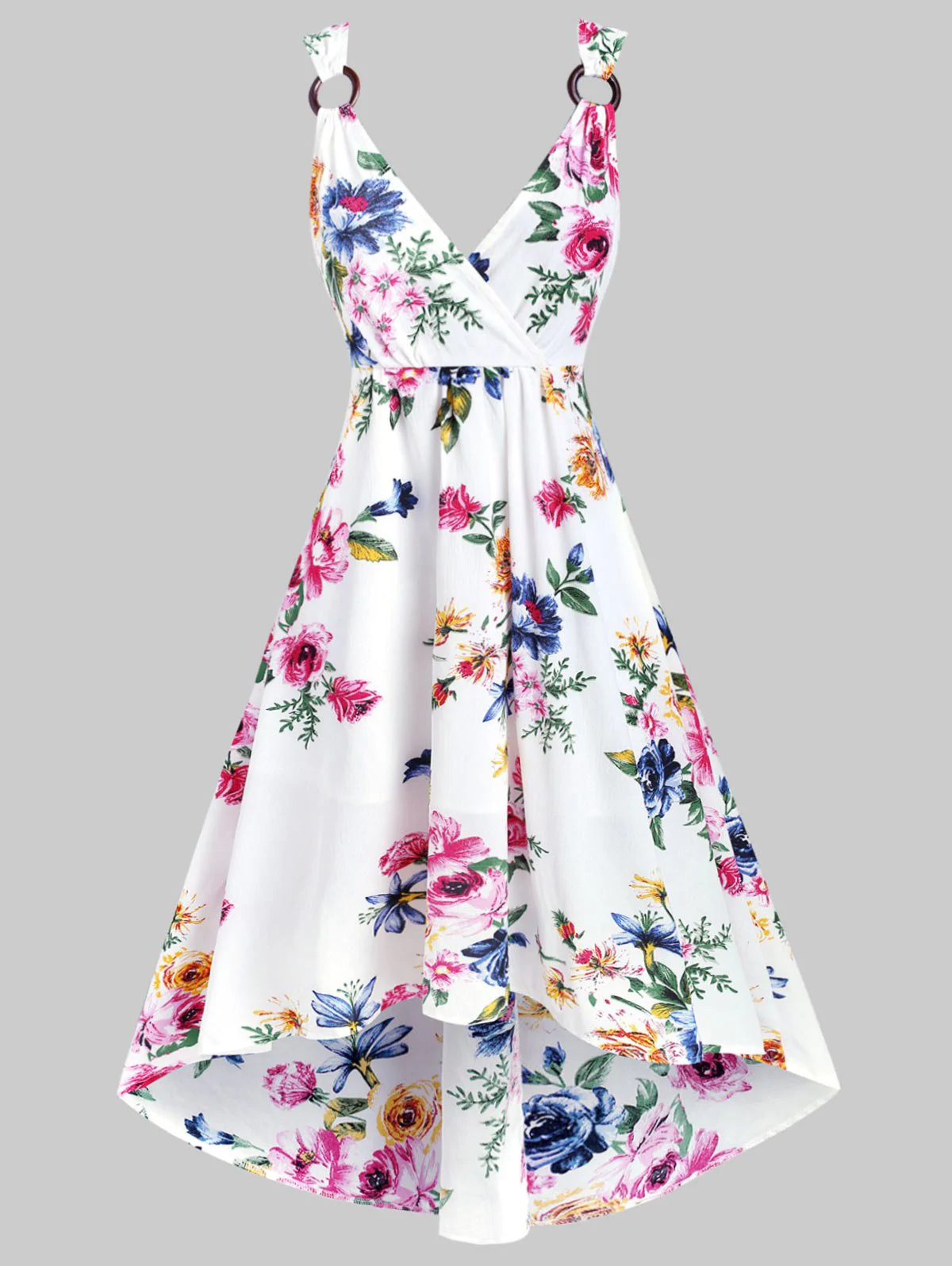 Flower Print O Ring High Low Surplice Dress