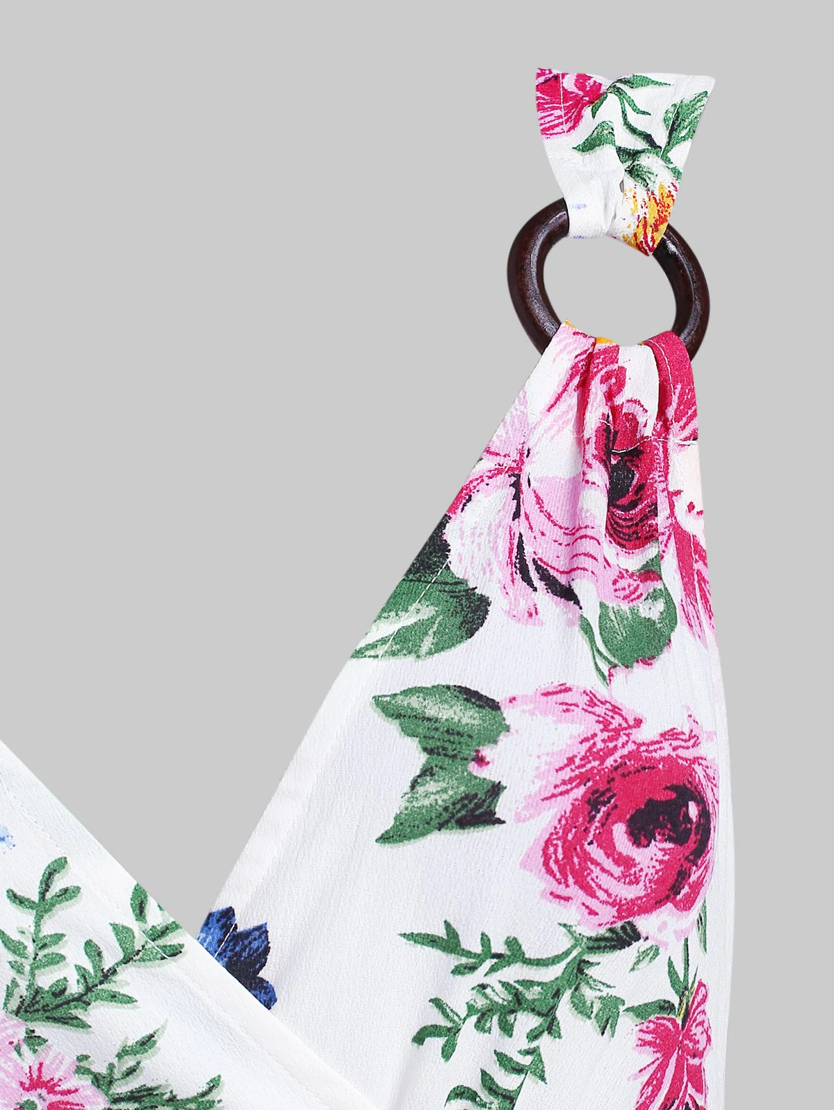 Printed with bold flower pattern, this maxi dress adorns with a chic surplice front which creates an alluring plunging neckline. The wide shoulder straps have O ring decoration to make a difference. While the dip hem gives the chance to flaunt your shapely legs.