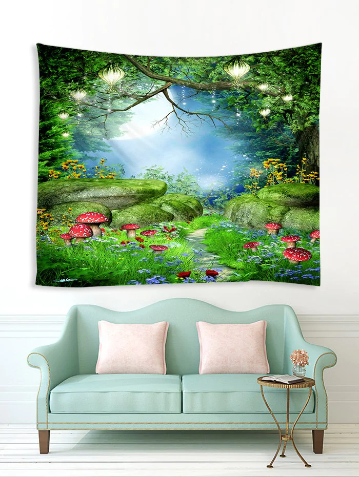 Forest Mushrooms Pattern Decorative Wall Hanging Tapestry