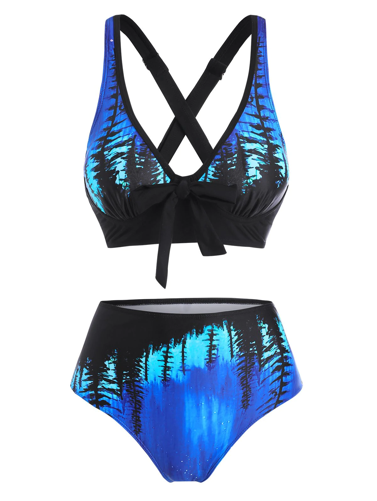 With forest and ombre pattern which make a difference and attract eyes, this bikini swimwear adorns with an alluring backless design that is decorated with crisscross straps to make it more inviting. The bowknot accent adds a sweet vibe, while the high rise helps to create a figure-flattering silhouette.