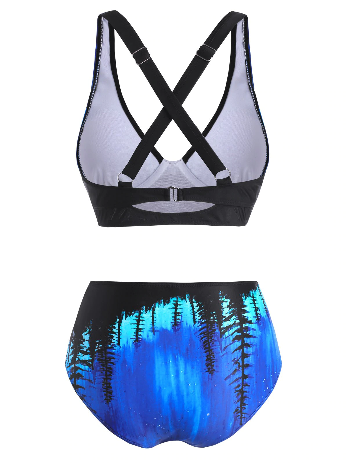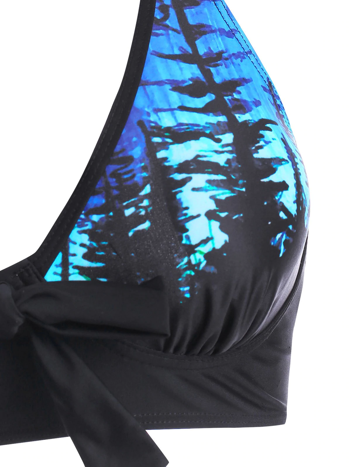 Forest Print Ombre Bowknot Crisscross Bikini Swimwear