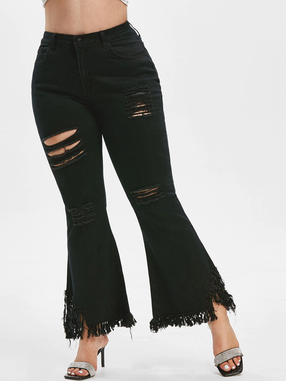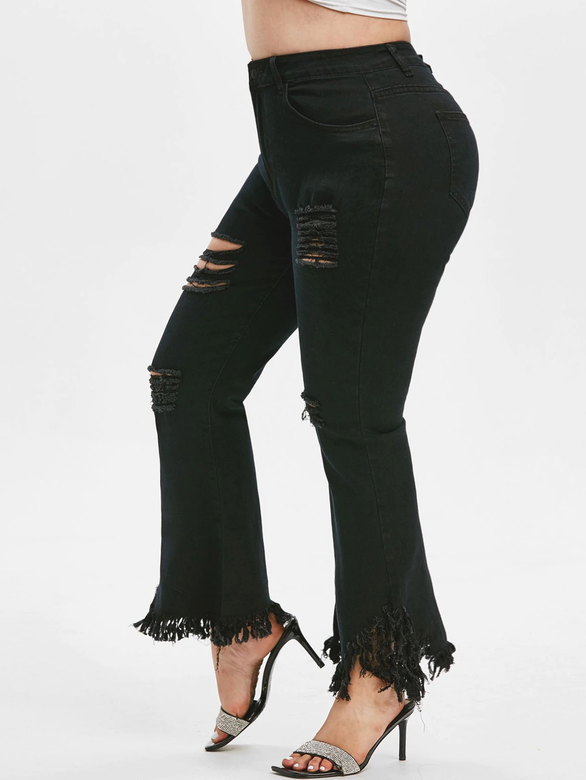 3 reviews for Frayed Hem Ripped Plus Size Flare Jeans
