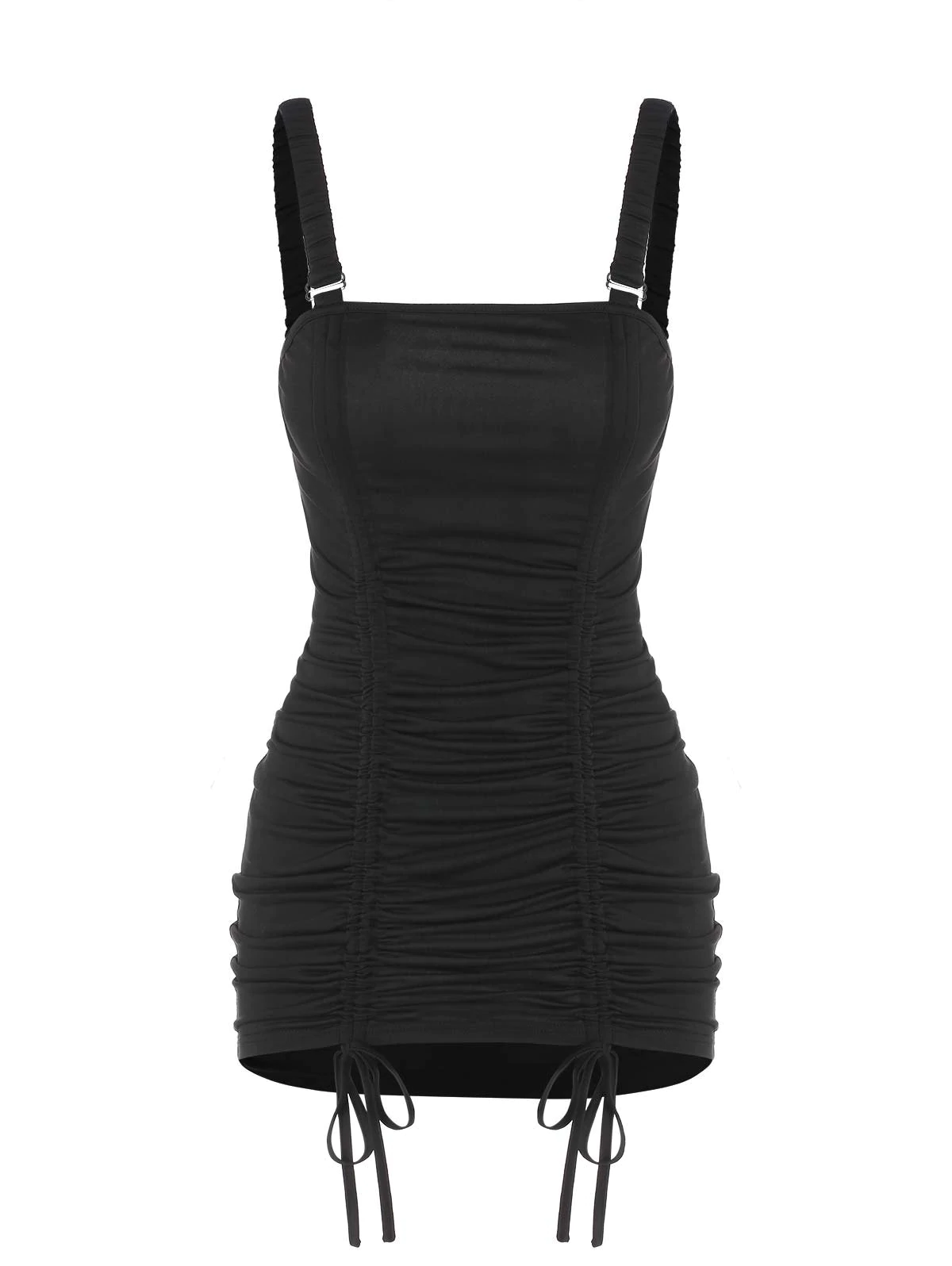 Front Drawstring Elastic Strap Mini Dress