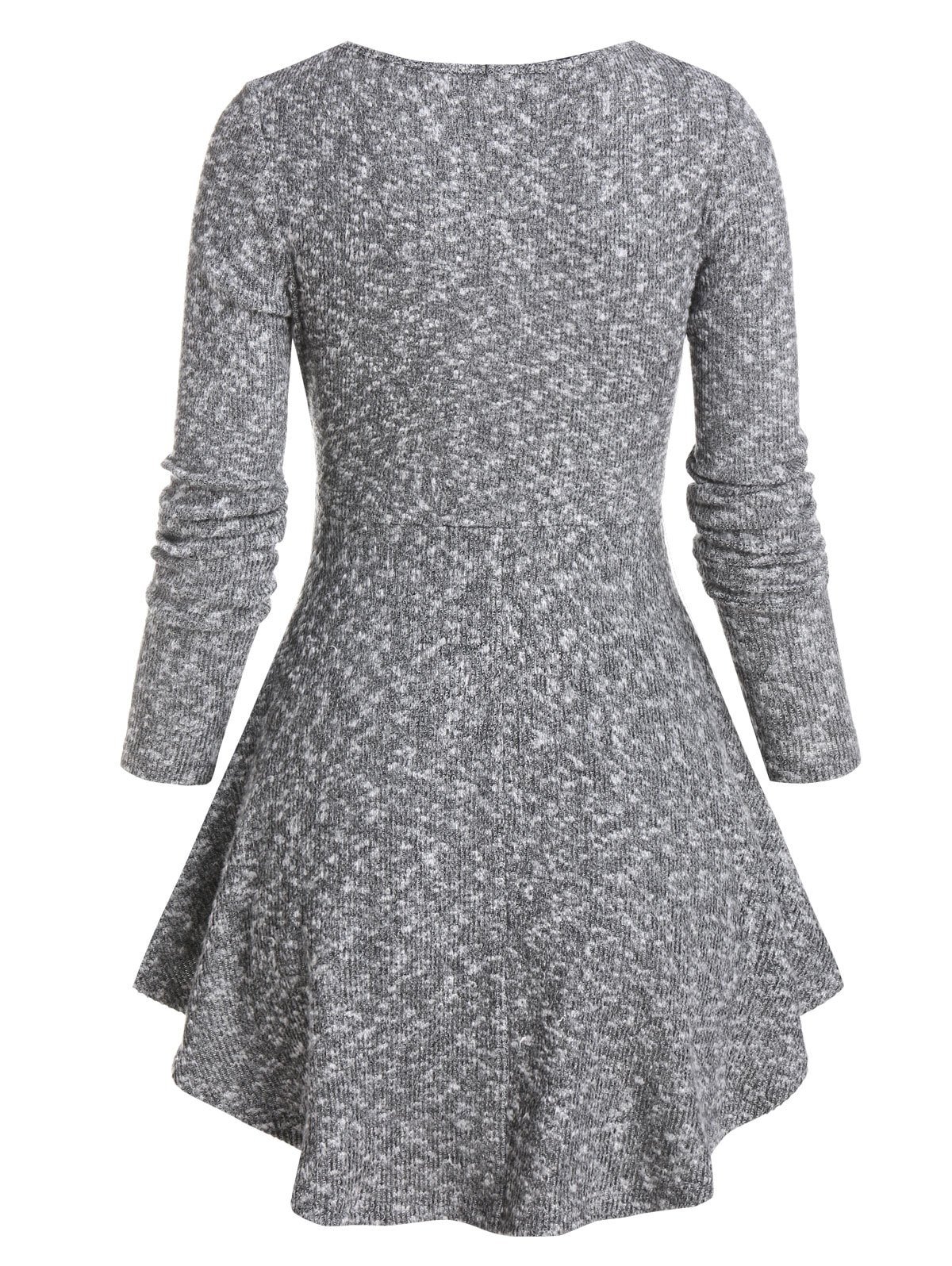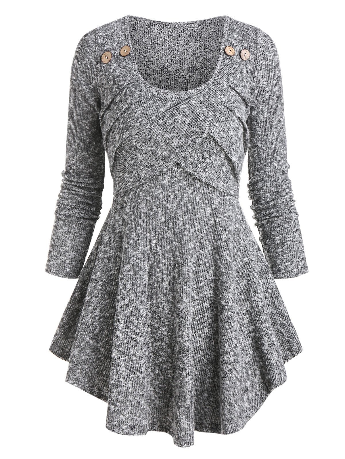 Front Pleated Scoop Neck Heathered Longline Sweater