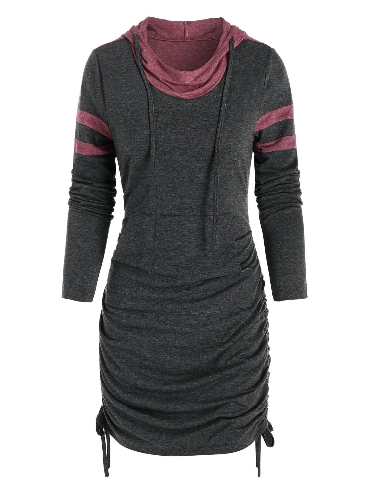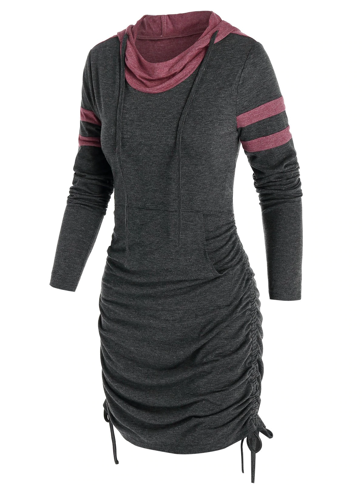 Front Pocket Heathered Cinched Mini Hoodie Dress
