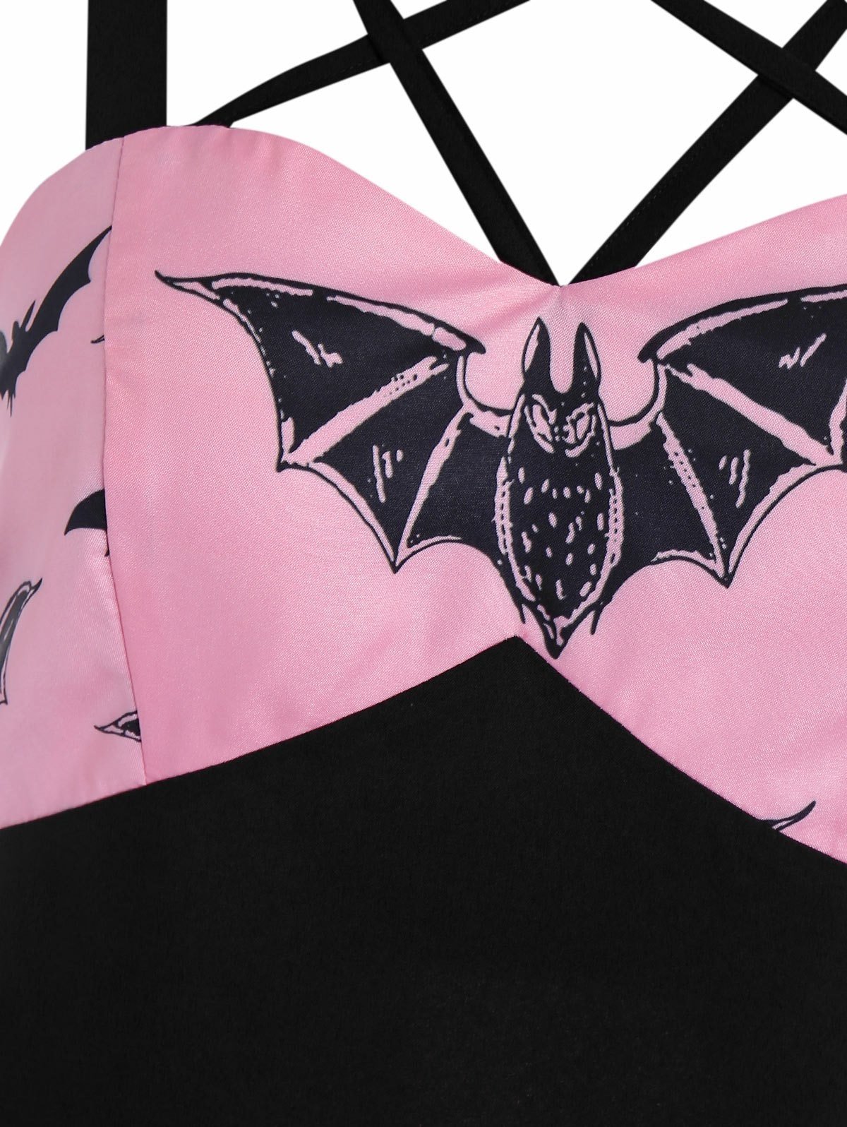 Front Strappy Bat Print High Waist Mini Cami Dress