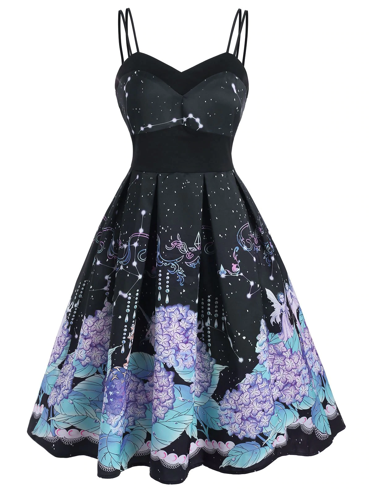 Galaxy Flower Elf Print Dual Strap Sleeveless Dress