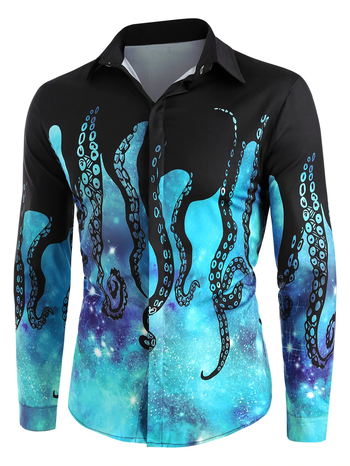 Galaxy Octopus Pattern Button Up Long Sleeve Shirt