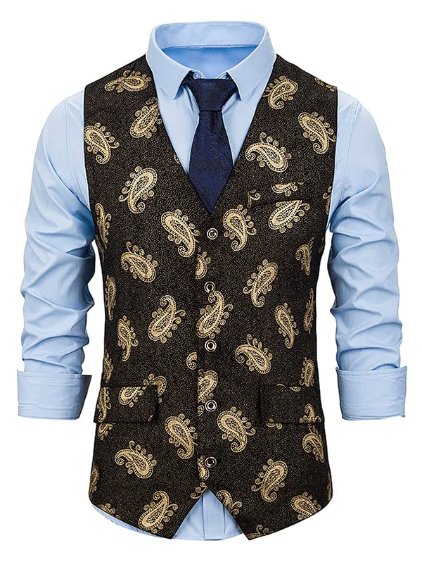 Gilding Paisley Pattern Single Breasted Vintage Vest