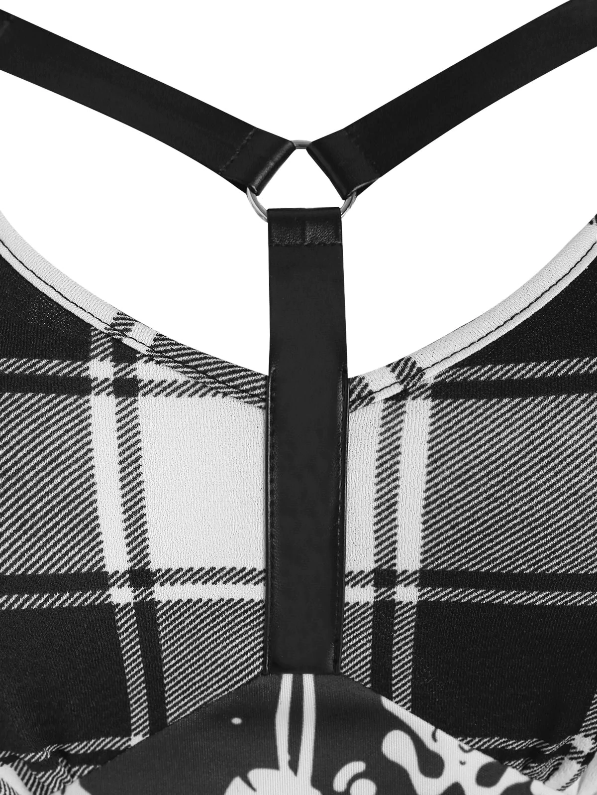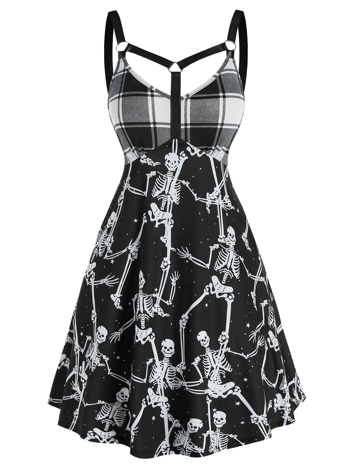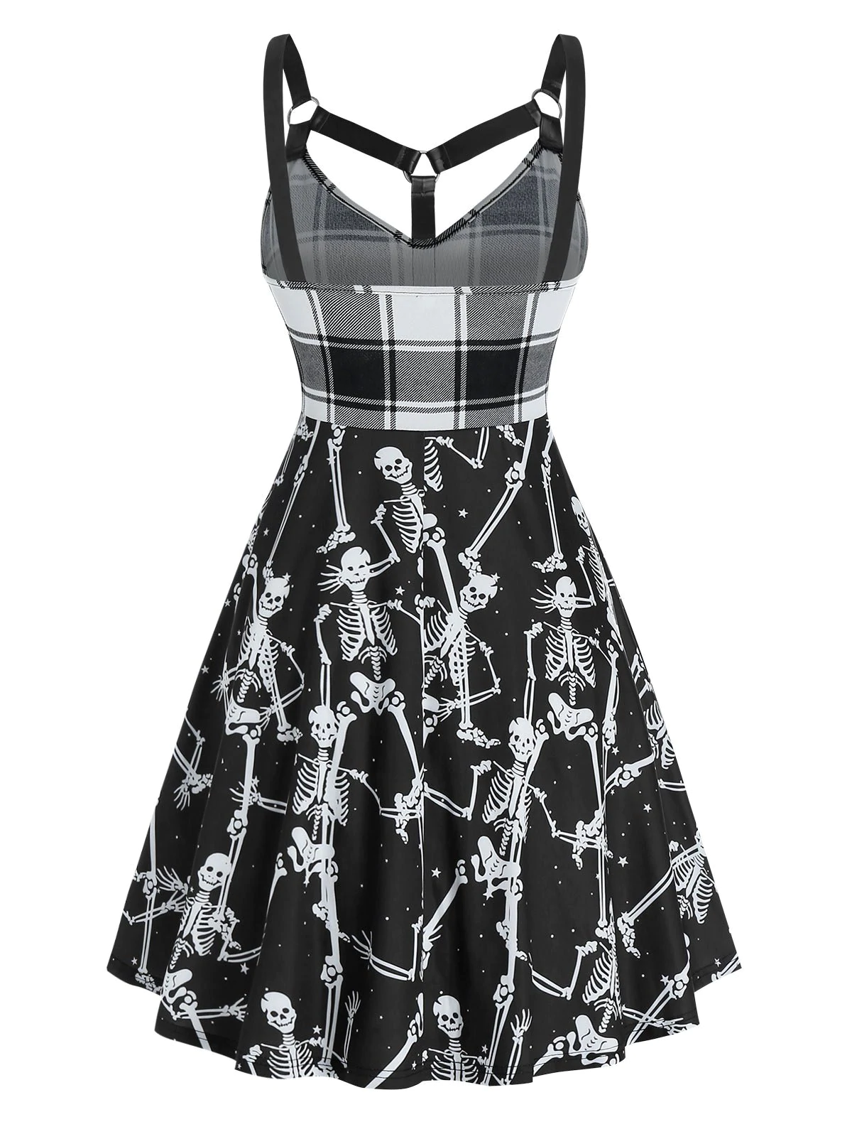 Gothic Skeleton Plaid Print O Ring Dress