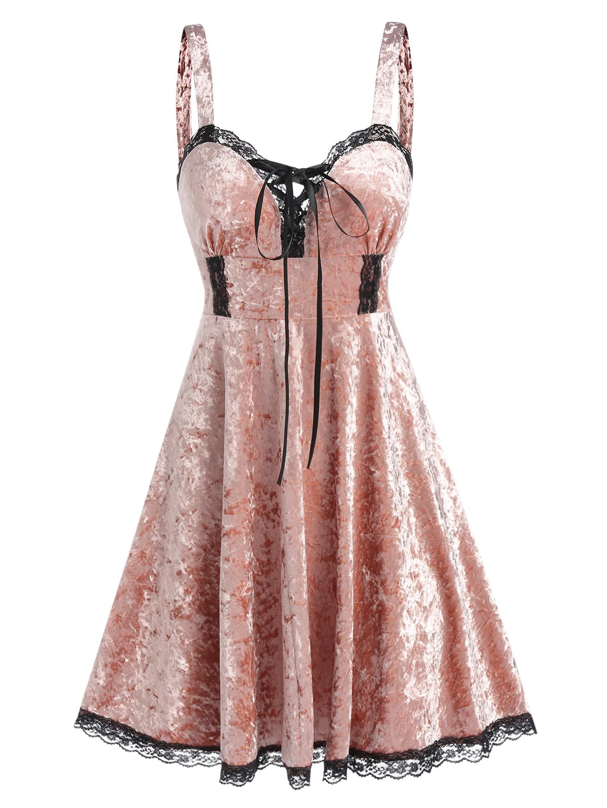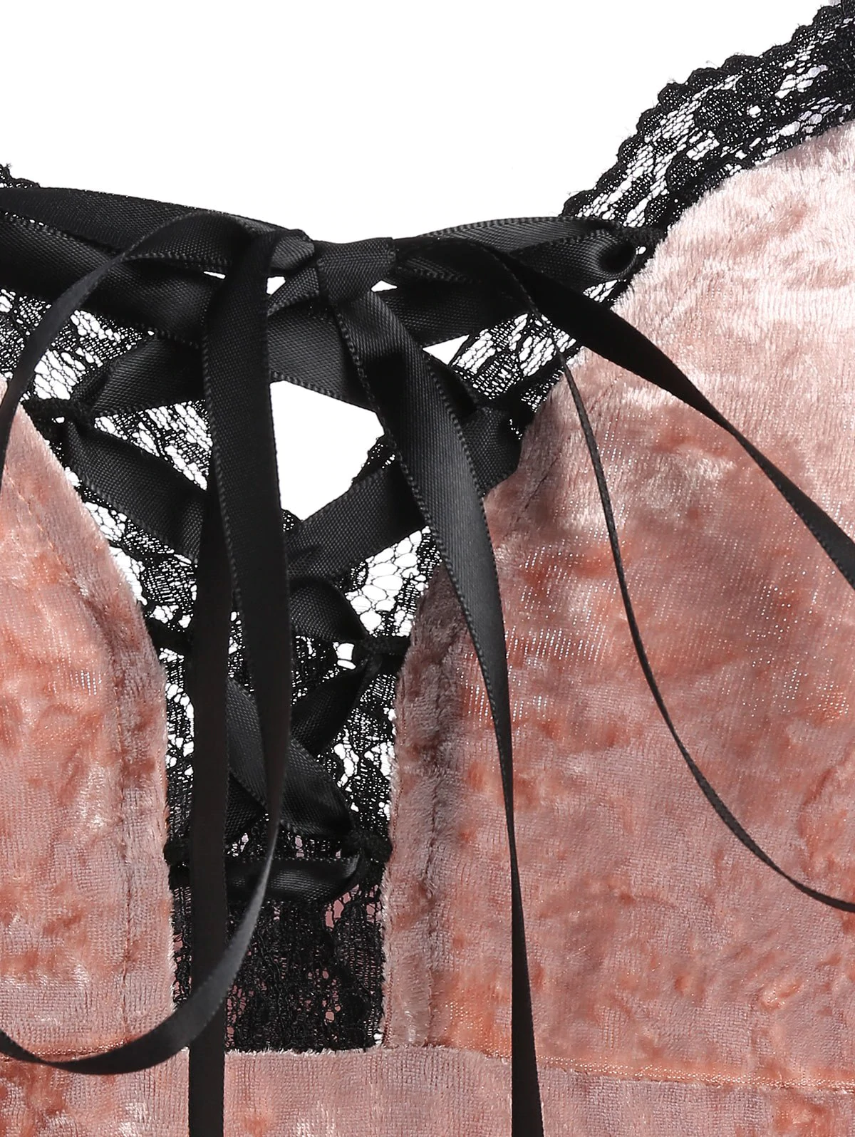 Gothic Velour Lace Panel Sweetheart Neck Dress