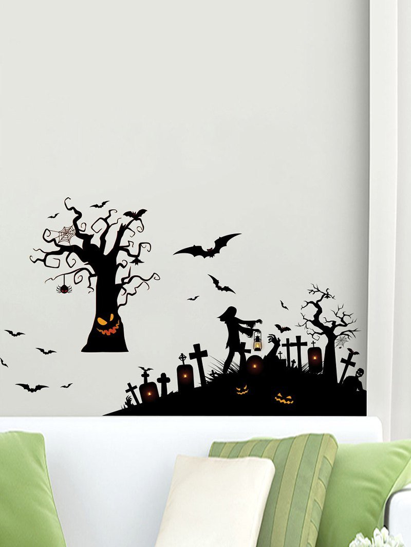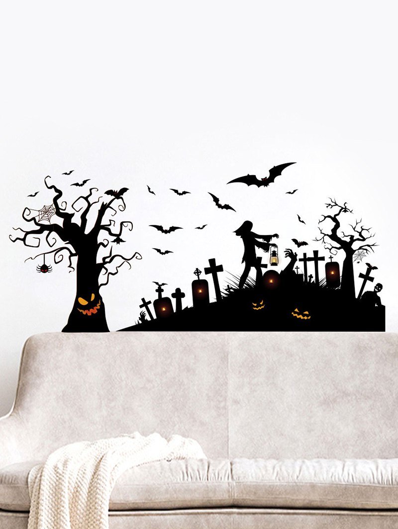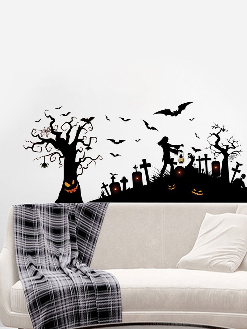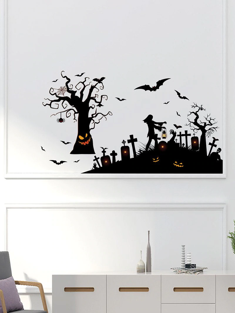 Halloween Bat Graveyard Printing Background Wall Sticker Set