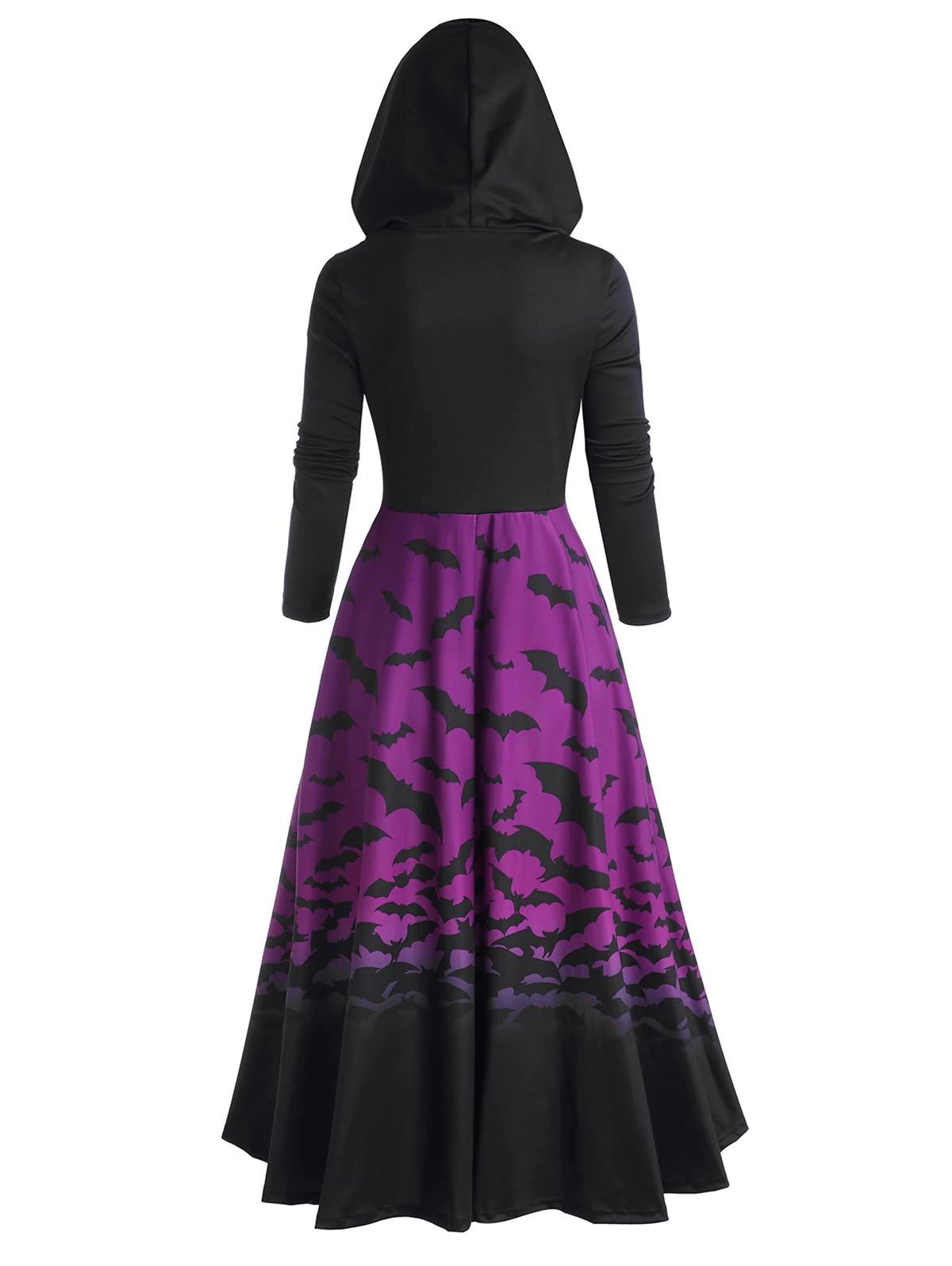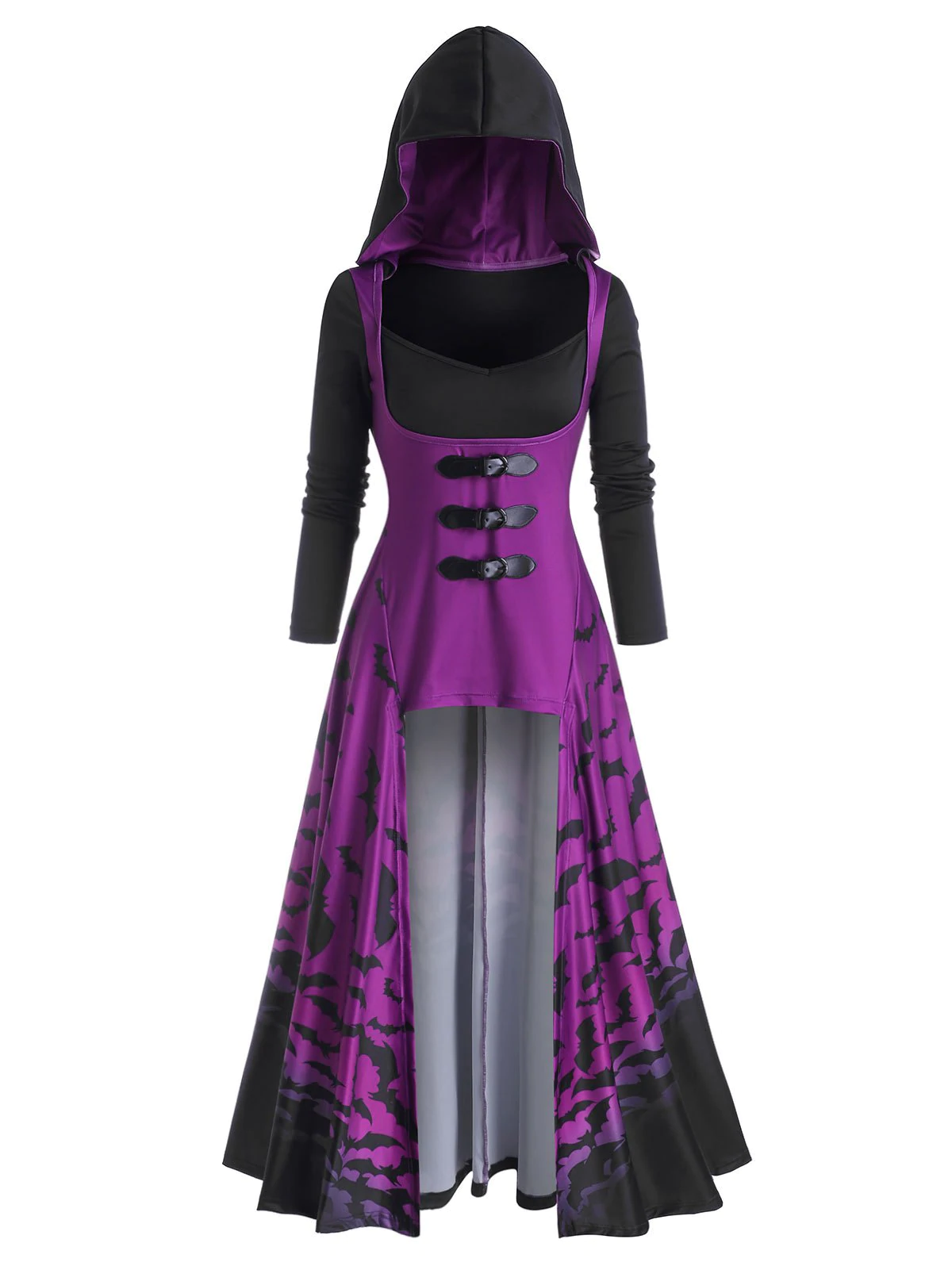 Halloween Bat Print Buckle Embellished Hooded High Low T-shirt