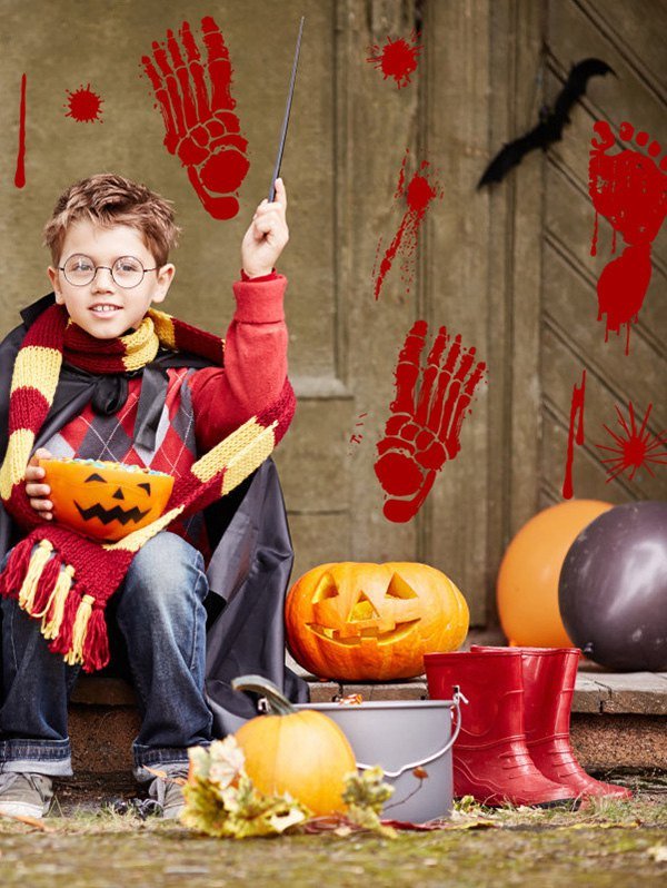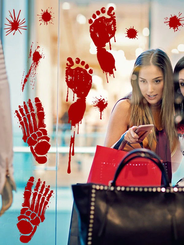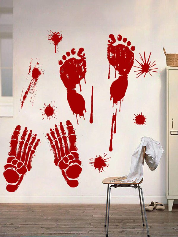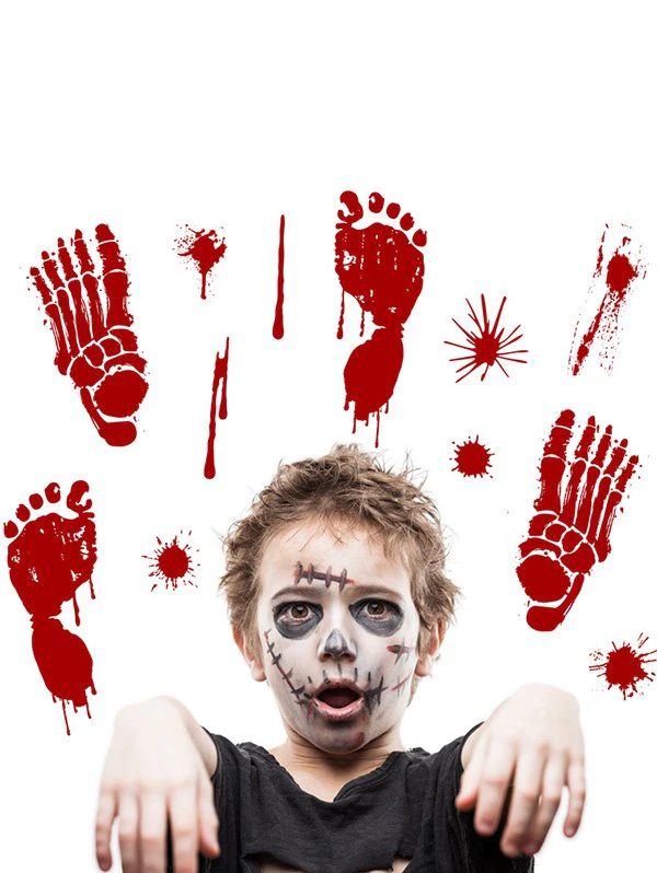Halloween Blood Footprint Skeleton Window Wall Stickers