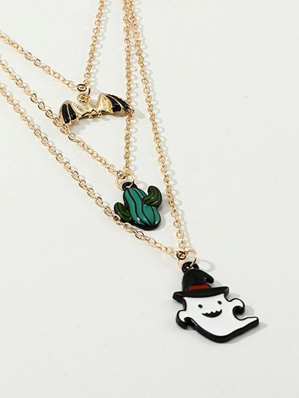 2 reviews for Halloween Cactus Ghost Bat Layers Necklace