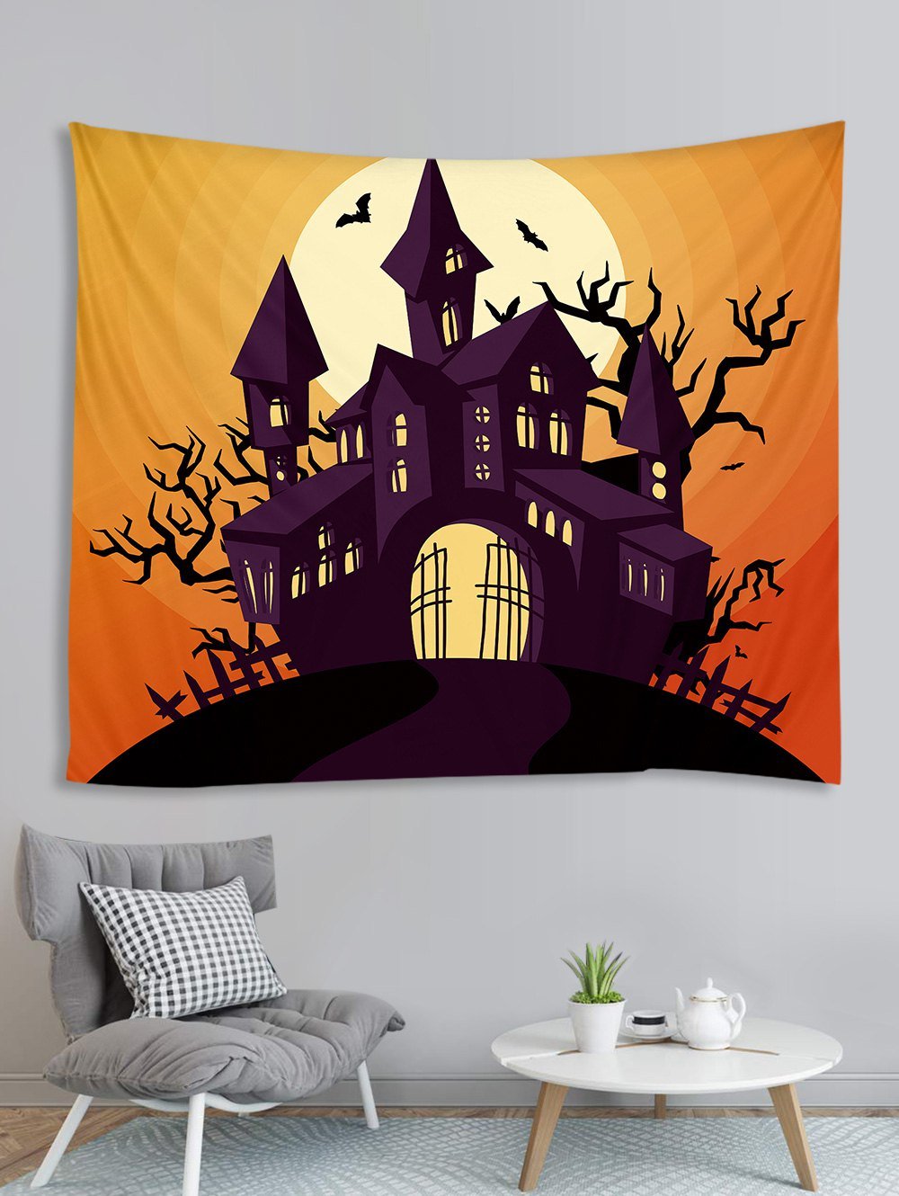Halloween Castle Moon Pattern Decorative Wall Hanging Tapestry