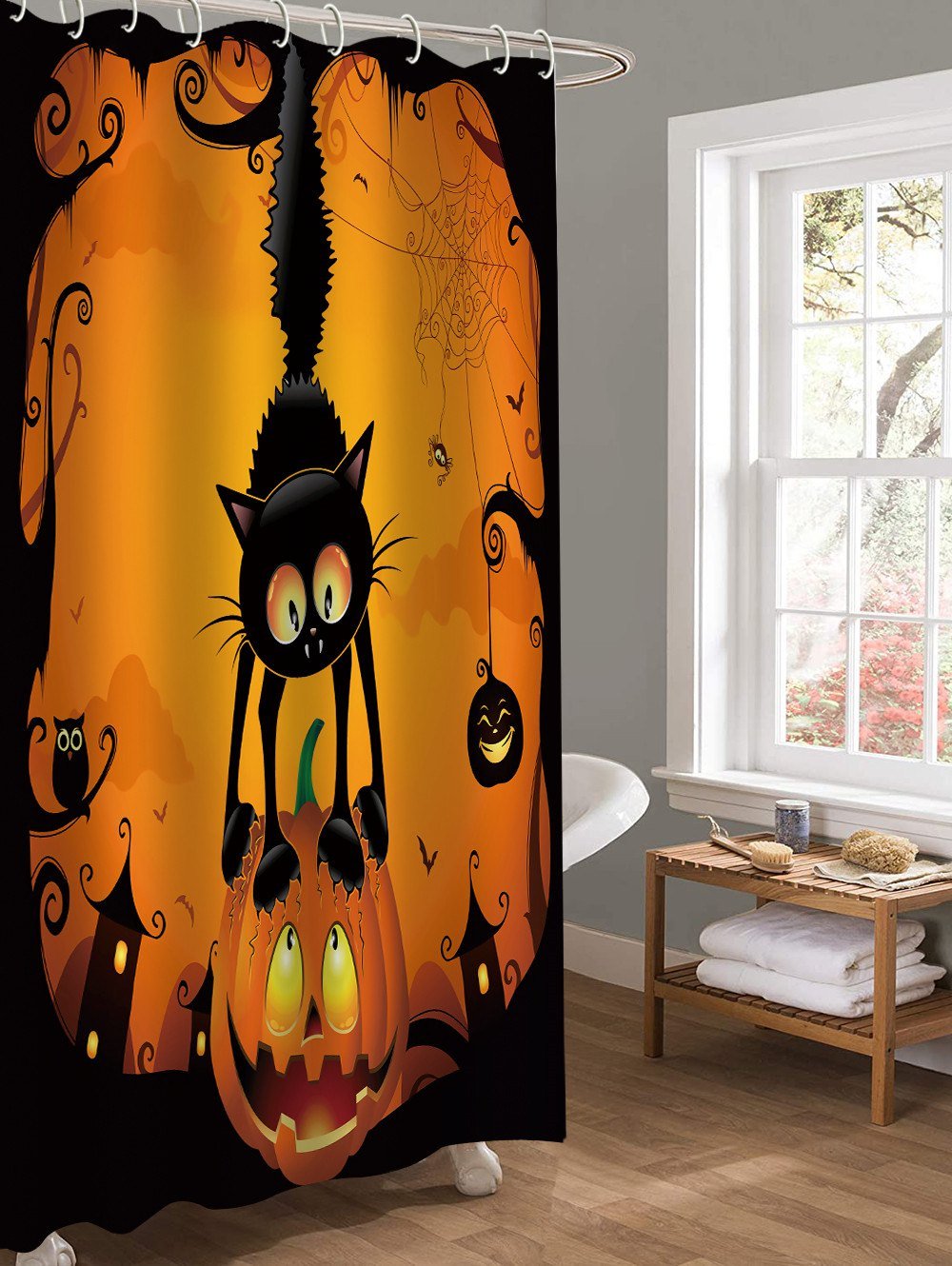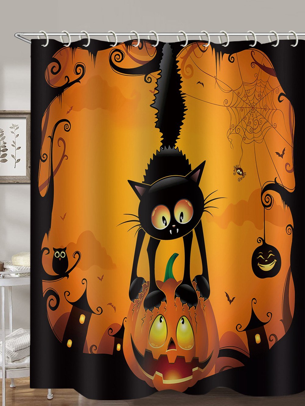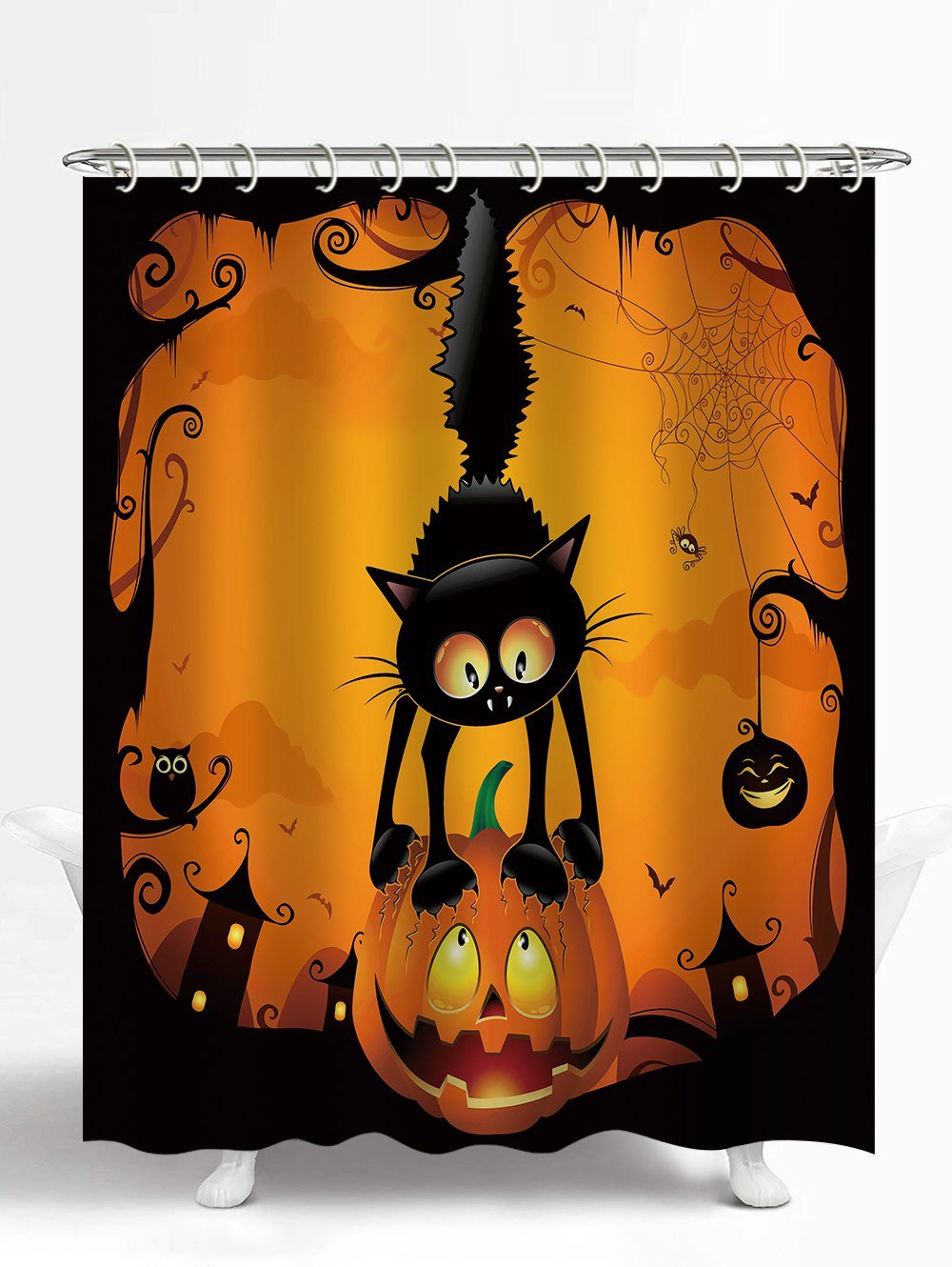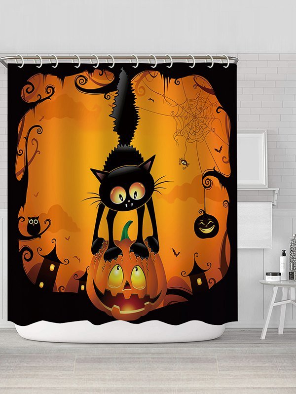 Halloween Cat Pumpkin Pattern Waterproof Shower Curtain