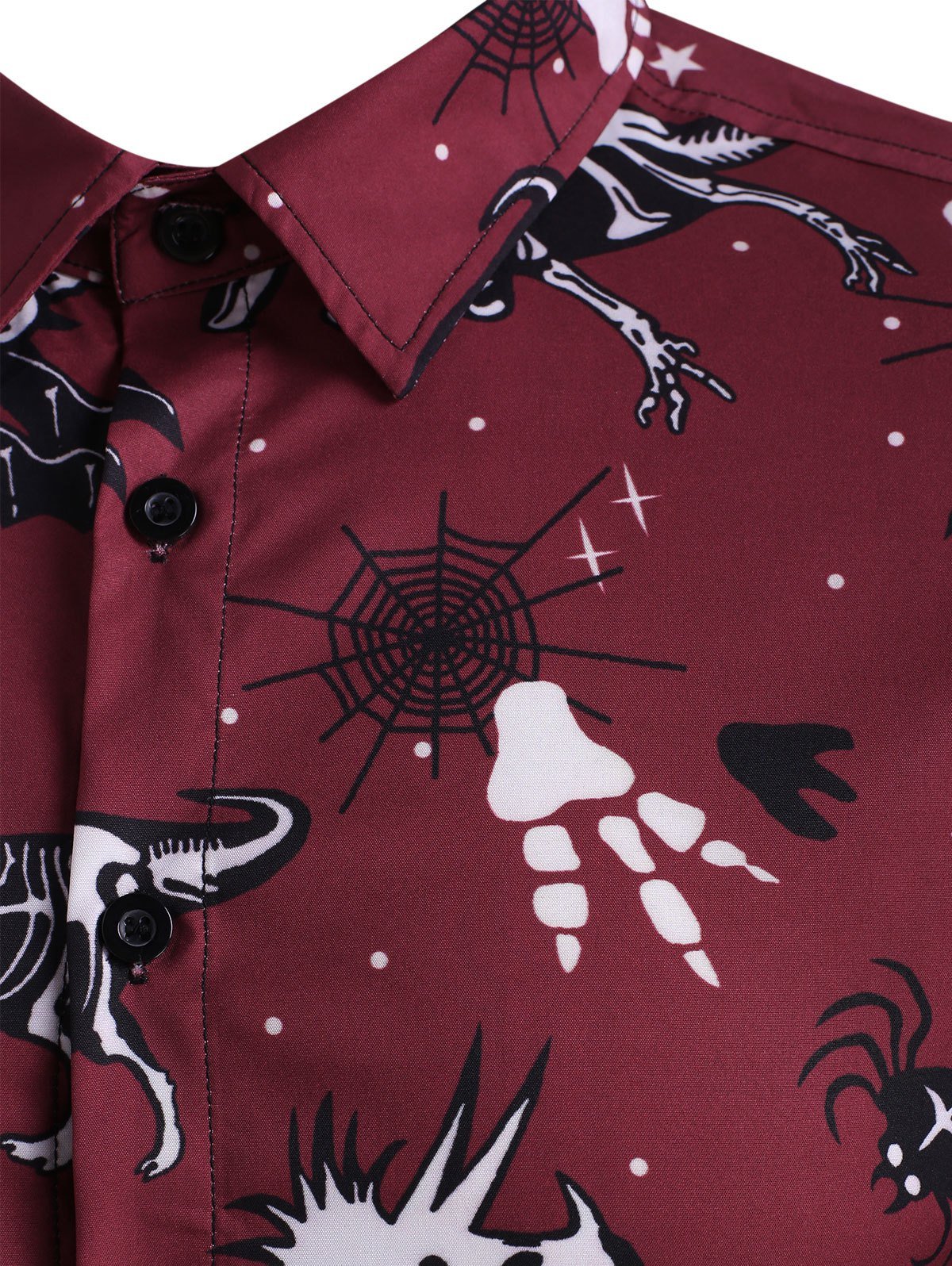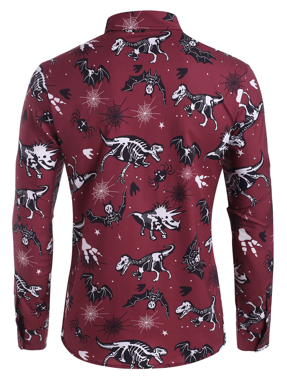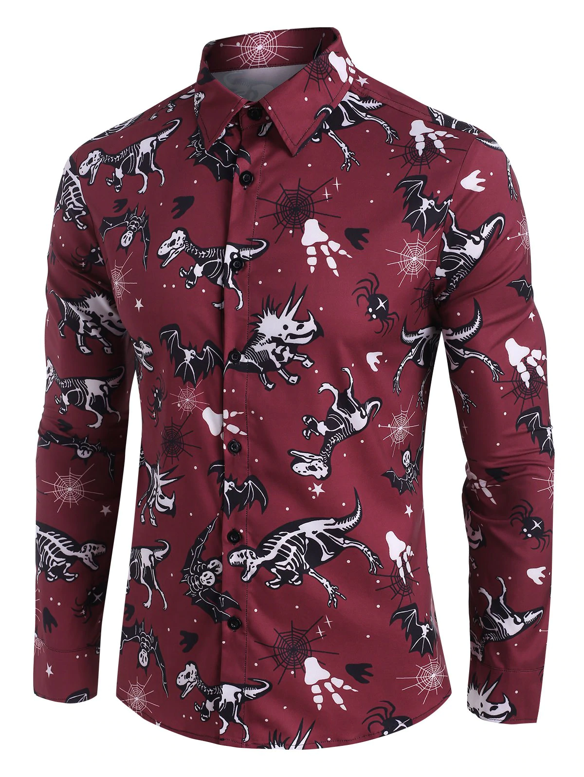 Halloween Dinosaur Bat Skeleton Print Button Up Shirt