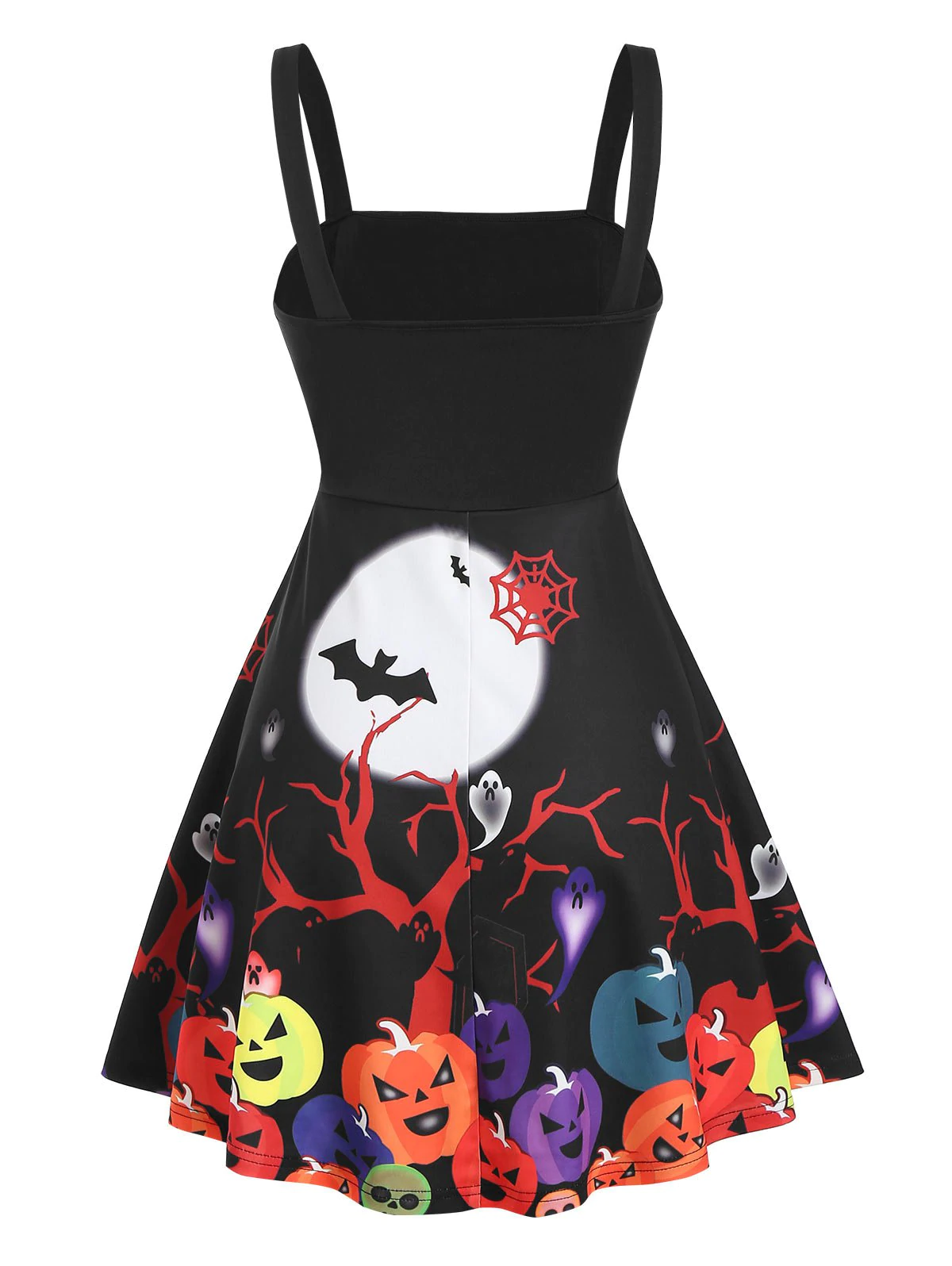 Halloween Moon Pumpkin Print Lace-up Sleeveless Dress