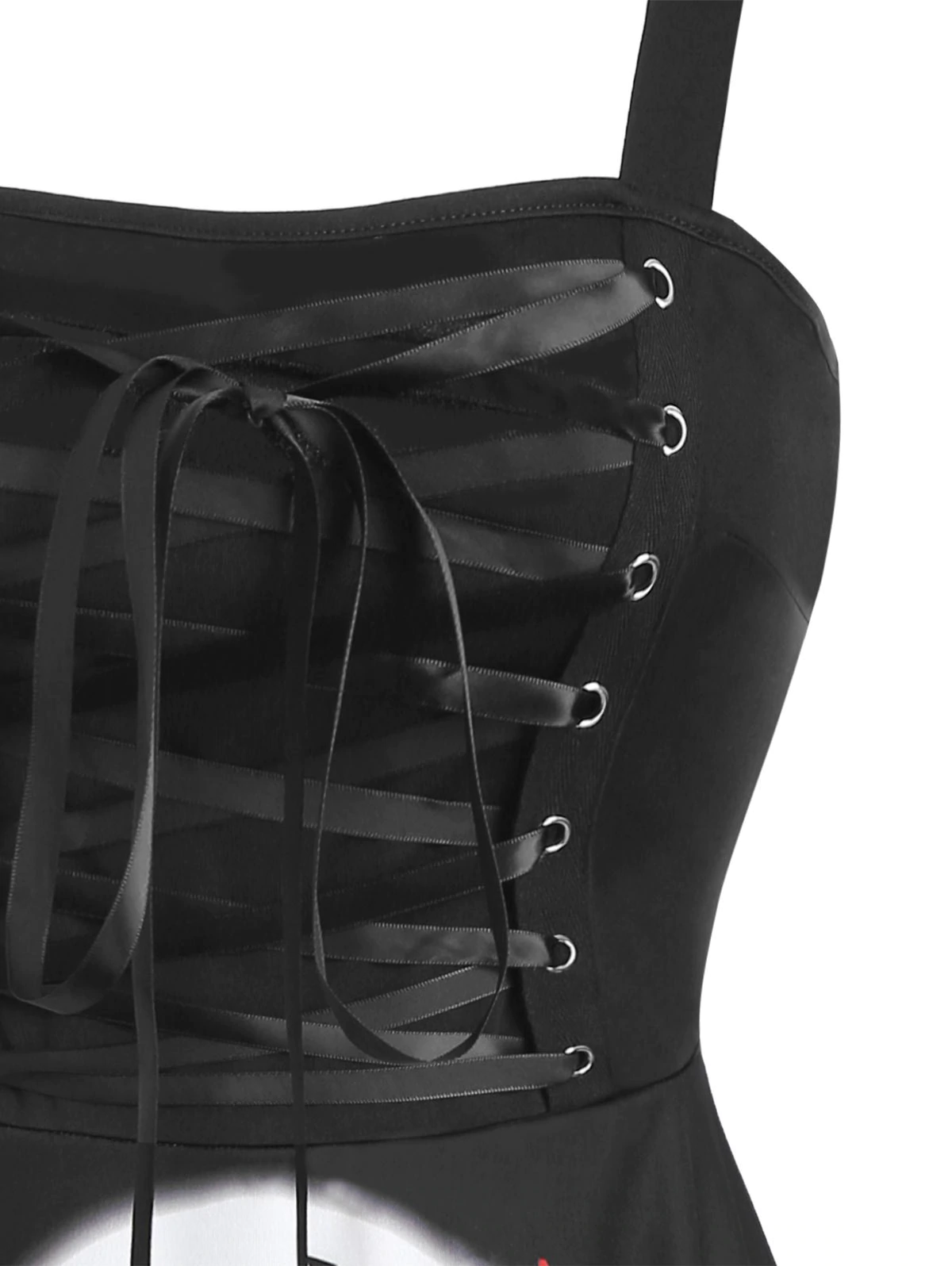 $22.990 out of 5Select options This product has multiple variants. The options may be chosen on the product pageHalloween Skeleton Print Lace-up Sleeveless Skater Dress