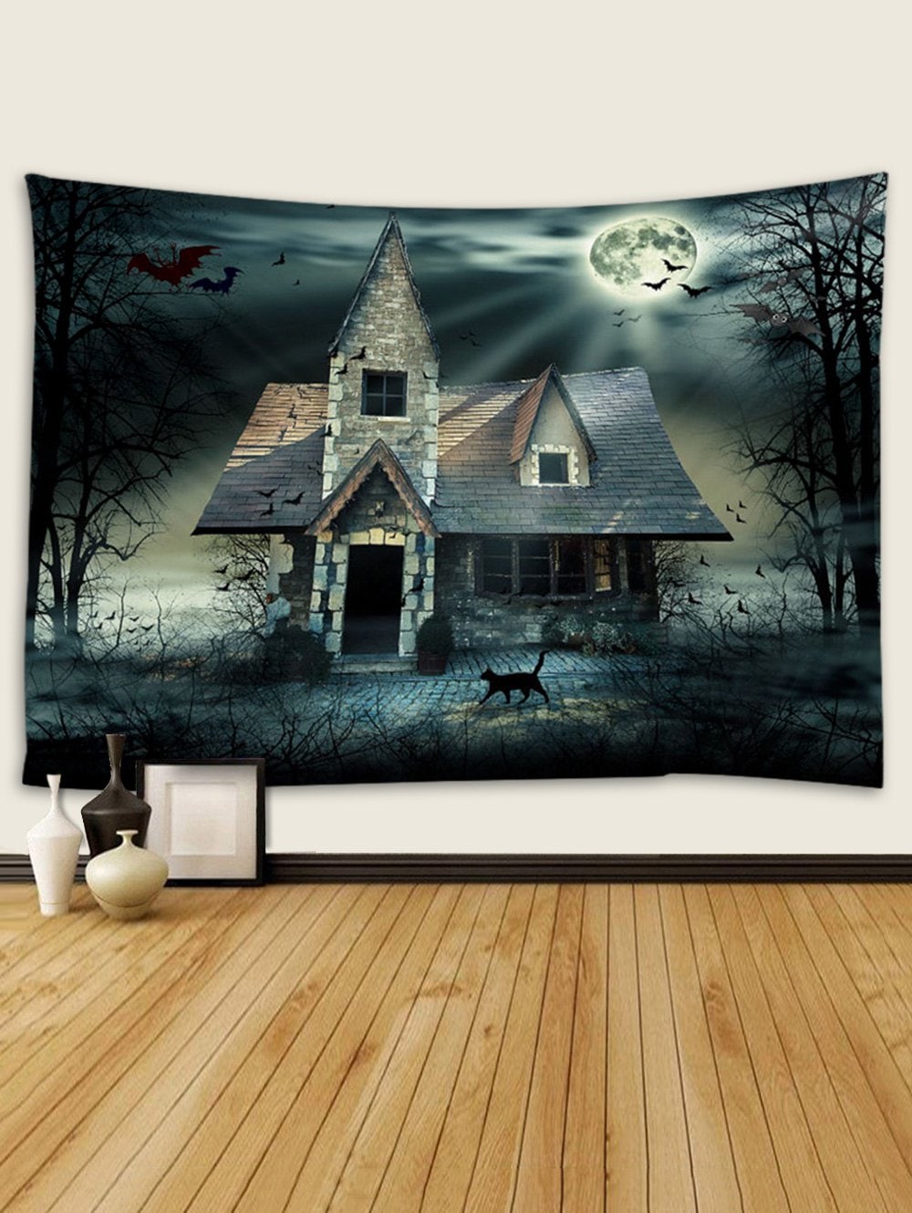 Halloween Night Bat House Print Decorative Wall Hanging Tapestry