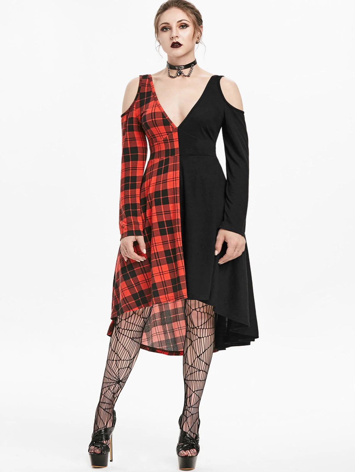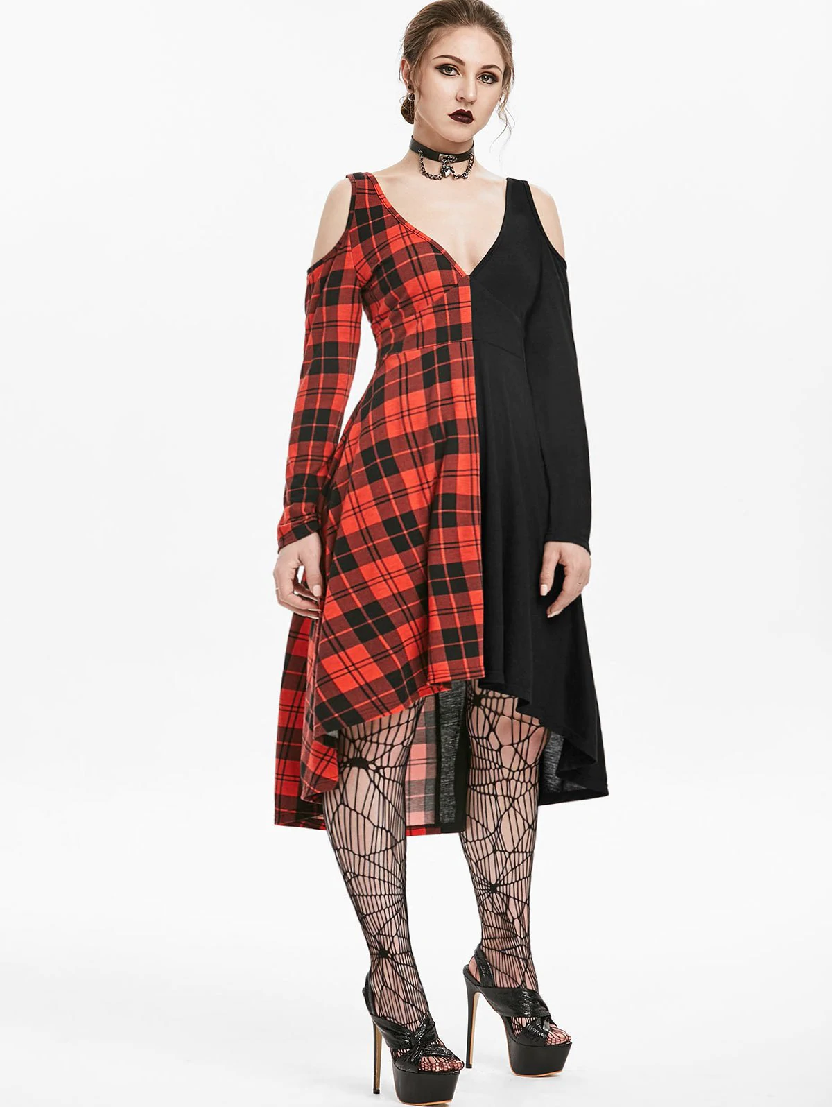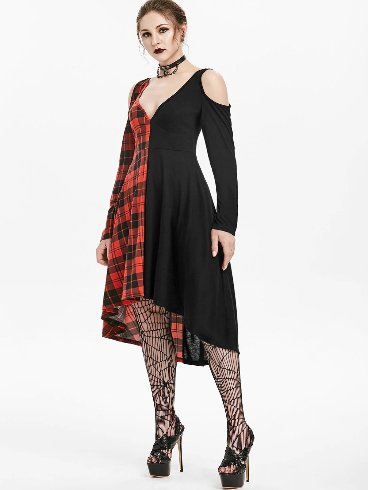 Halloween Plaid O Ring Cut Out Gothic Dress