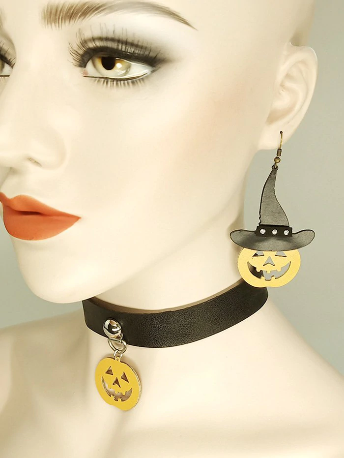 2 reviews for Halloween PU Pumpkin Choker Necklace Earrings Set