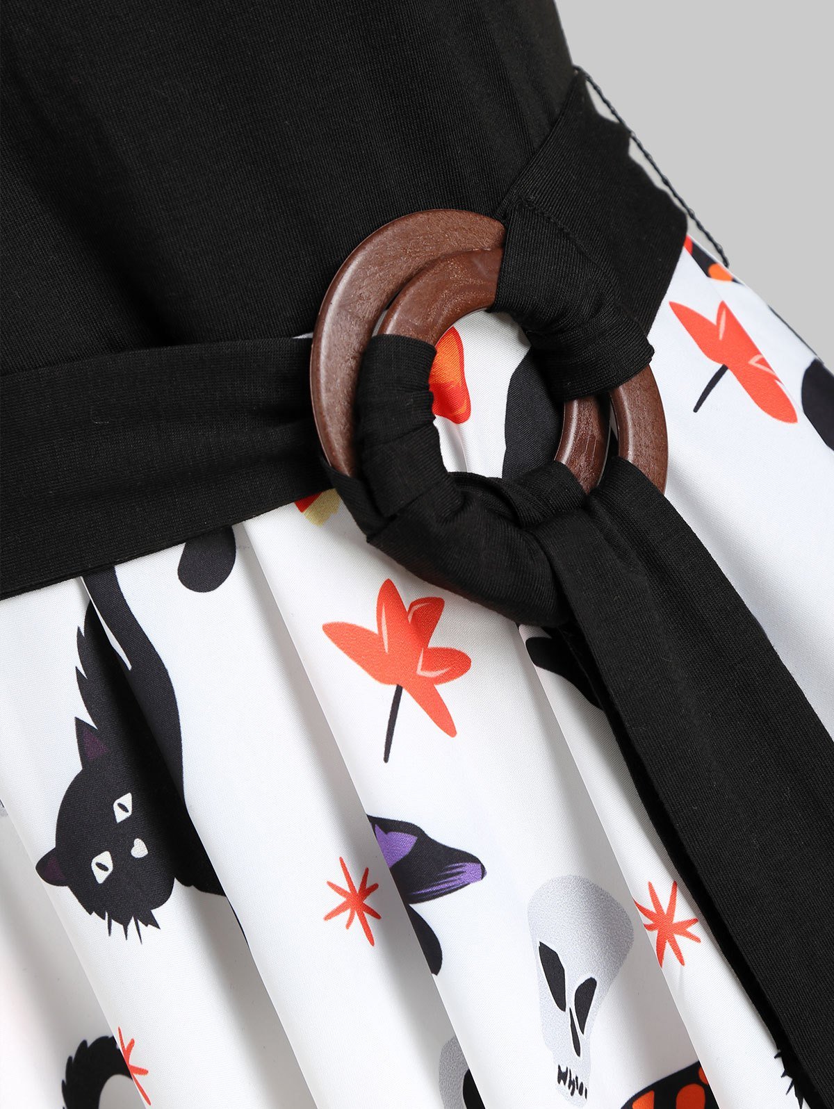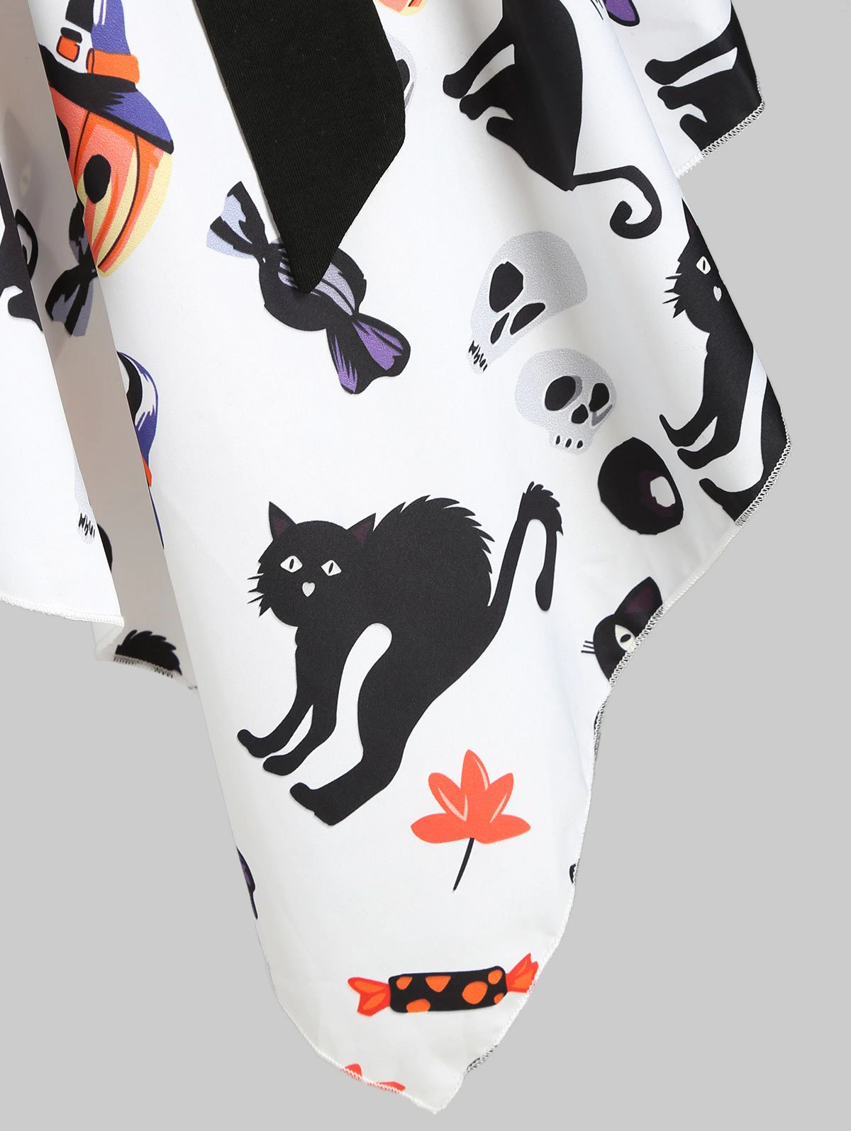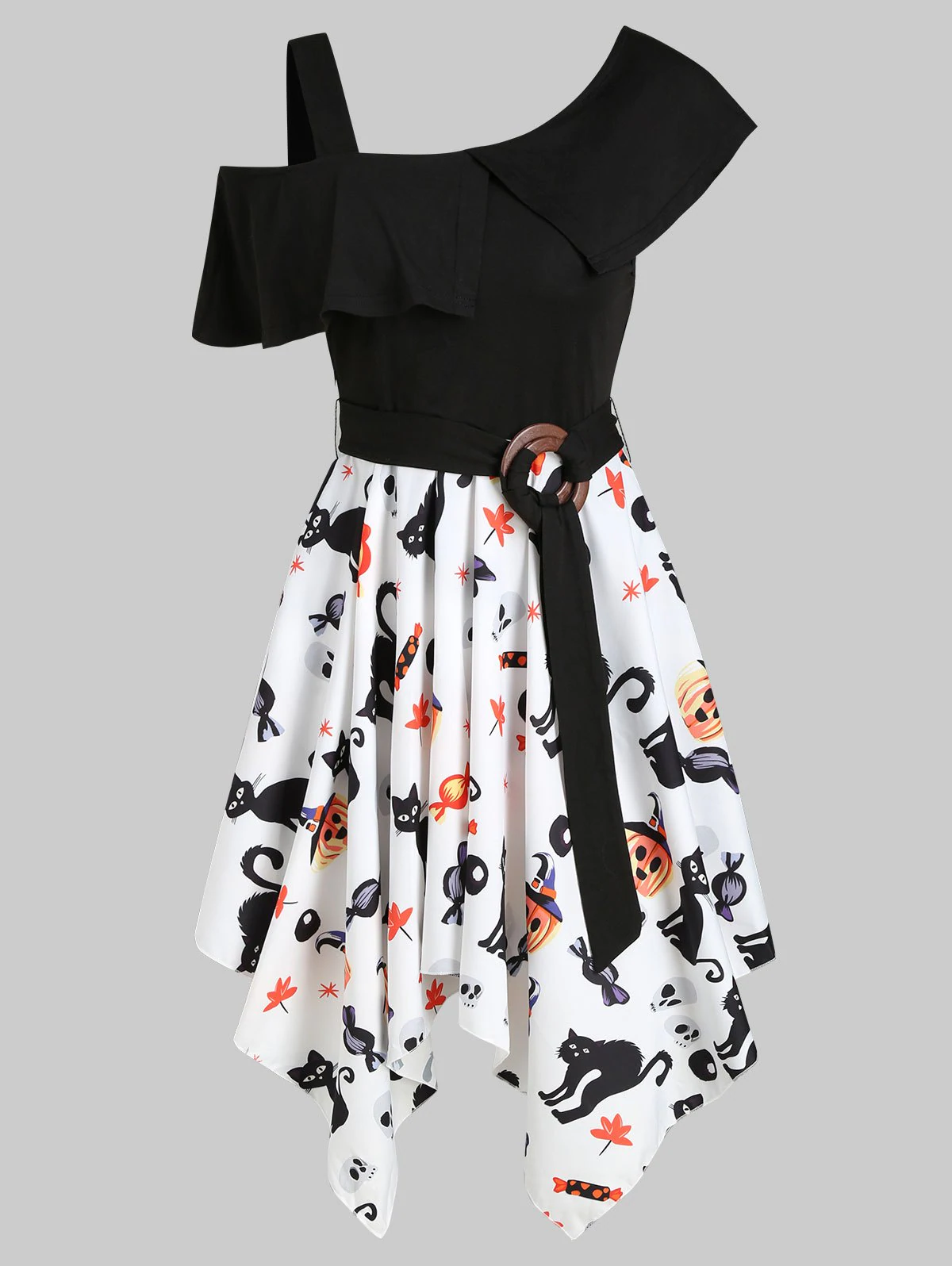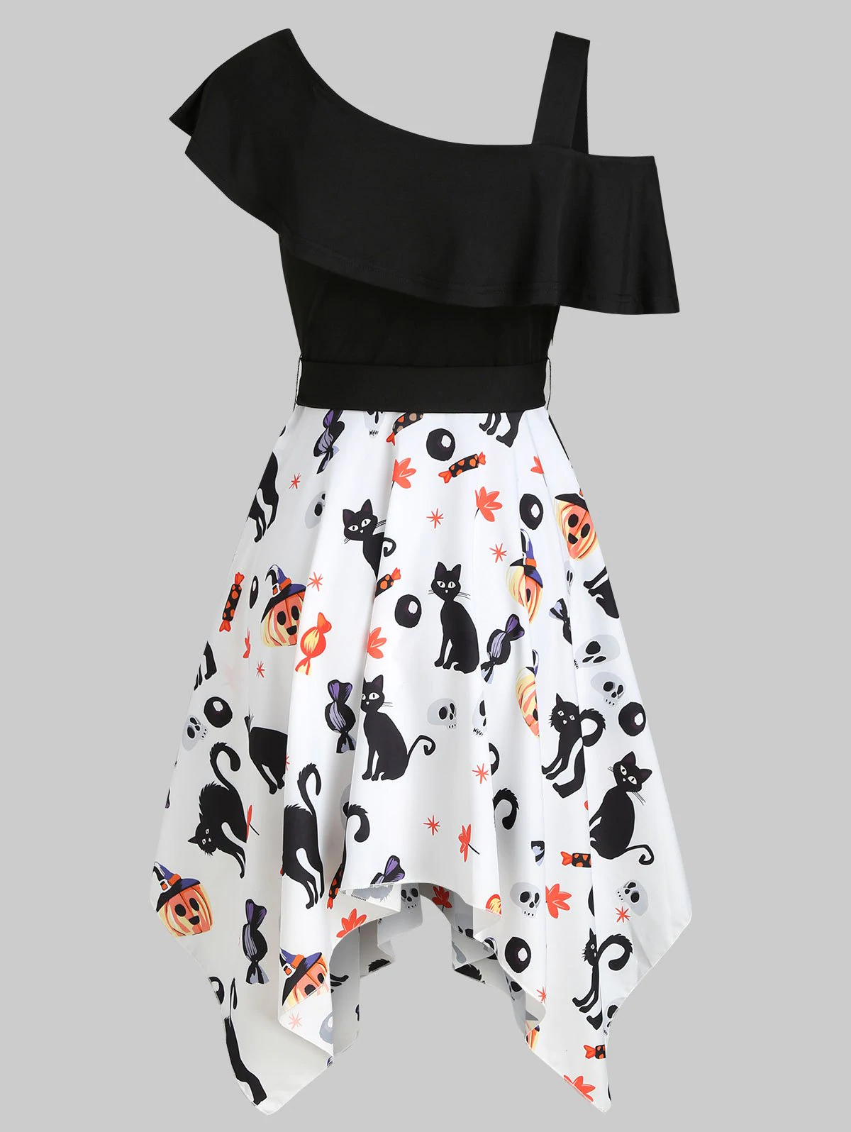 Halloween Pumpkin Cat Skew Neck Handkerchief Dress