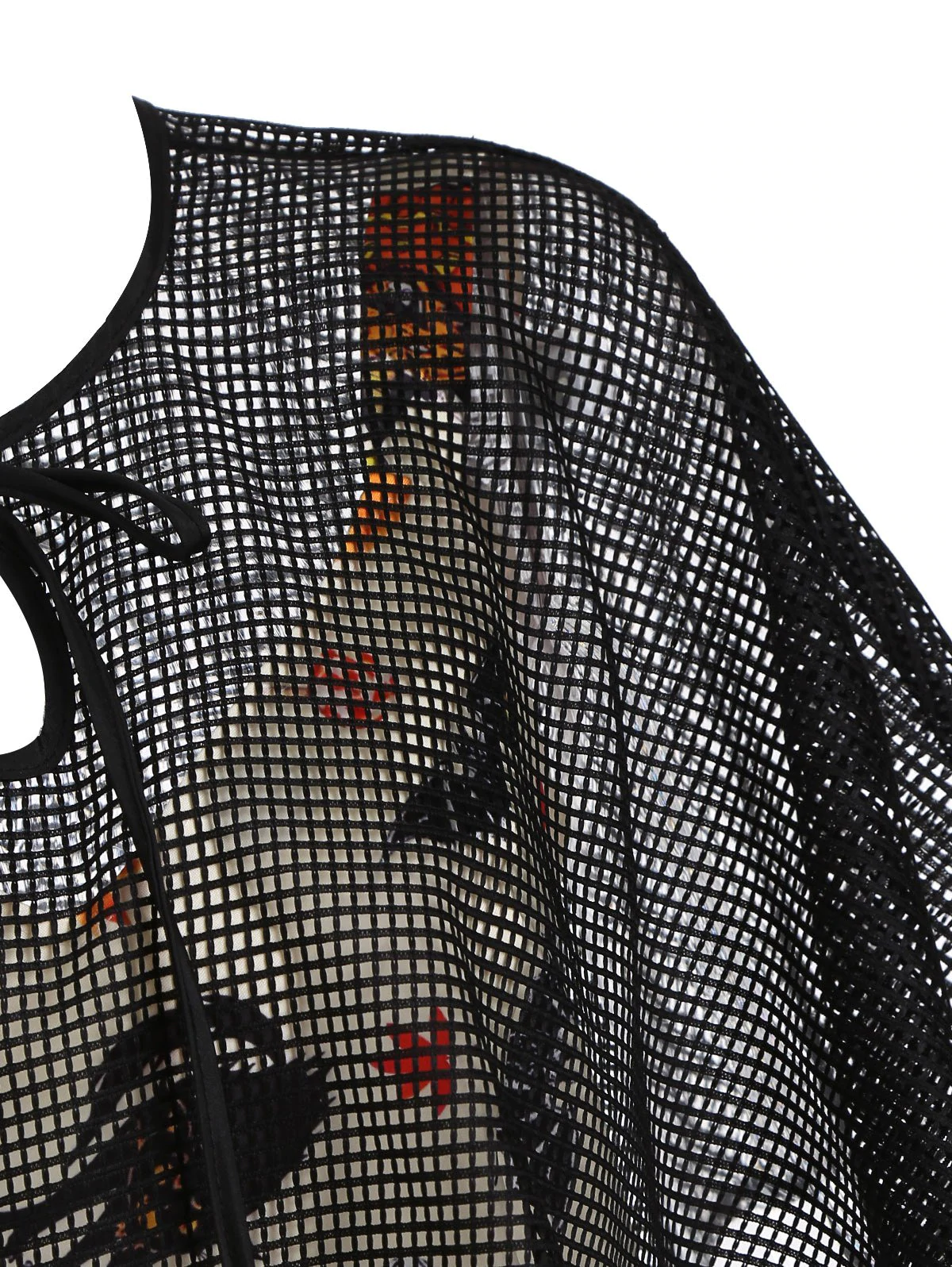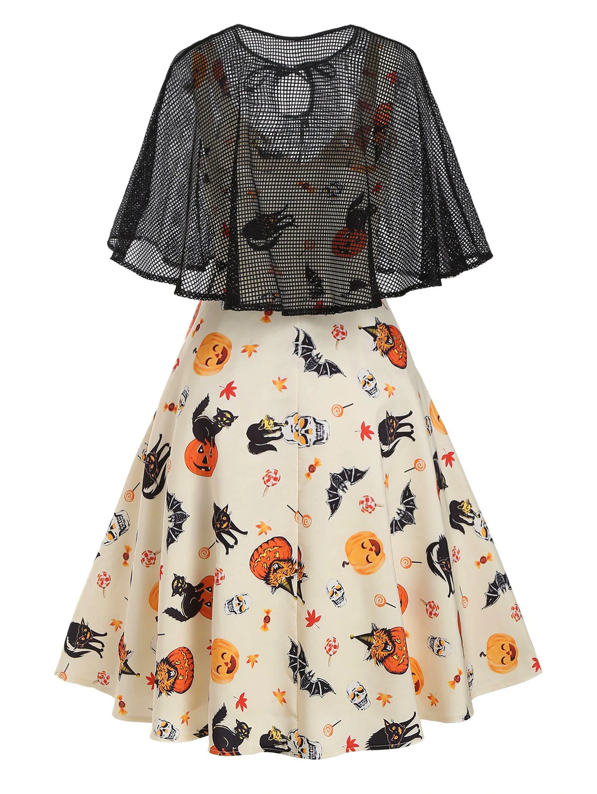 Halloween Pumpkin Cat Skull Print Dress with Fishnet Cape