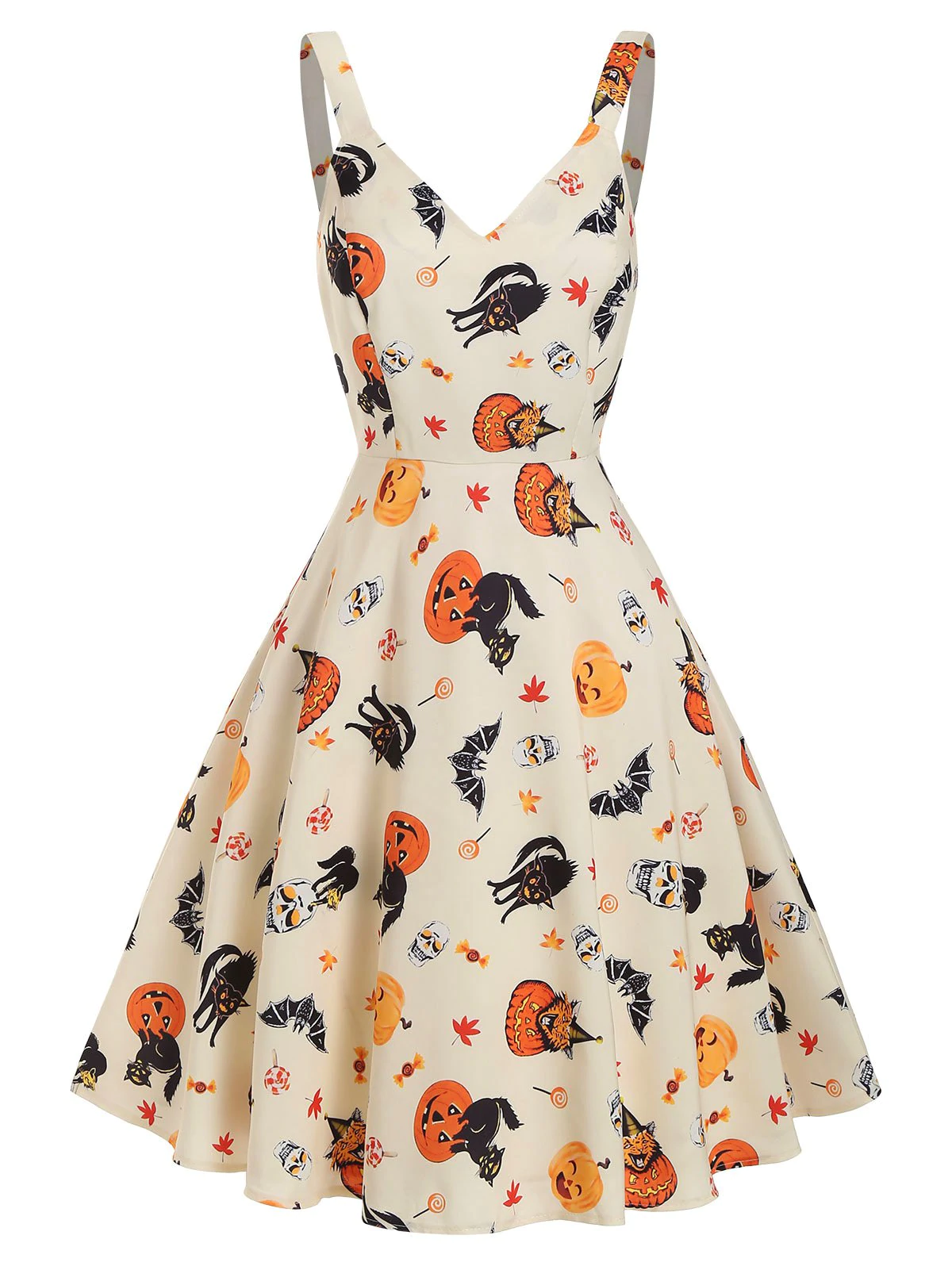 $46.480 out of 5Select options This product has multiple variants. The options may be chosen on the product pageHalloween Pumpkin Cat Flower Print Halter Dress