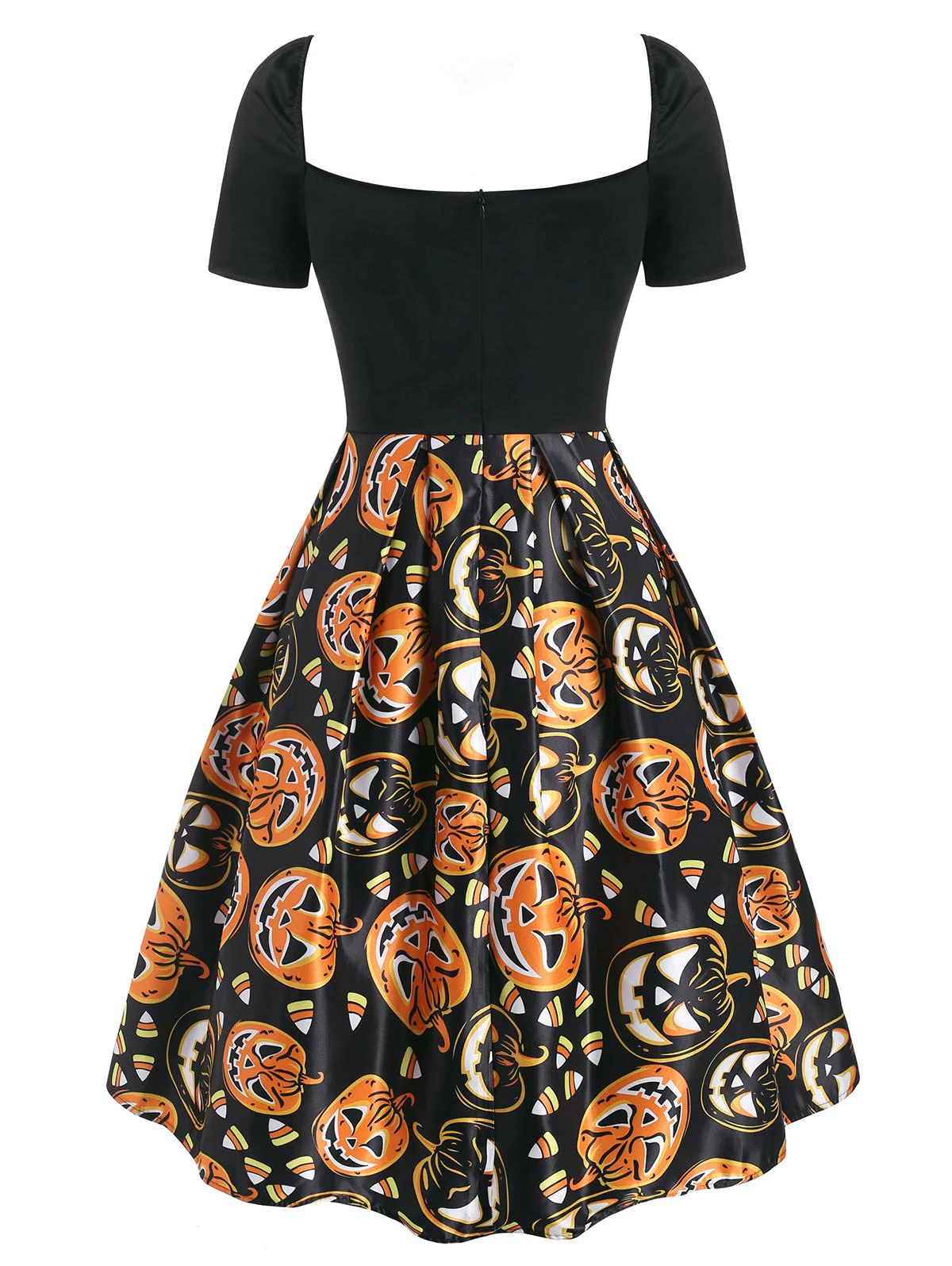 1 review for Halloween Pumpkin Lace Up Plunging Dress