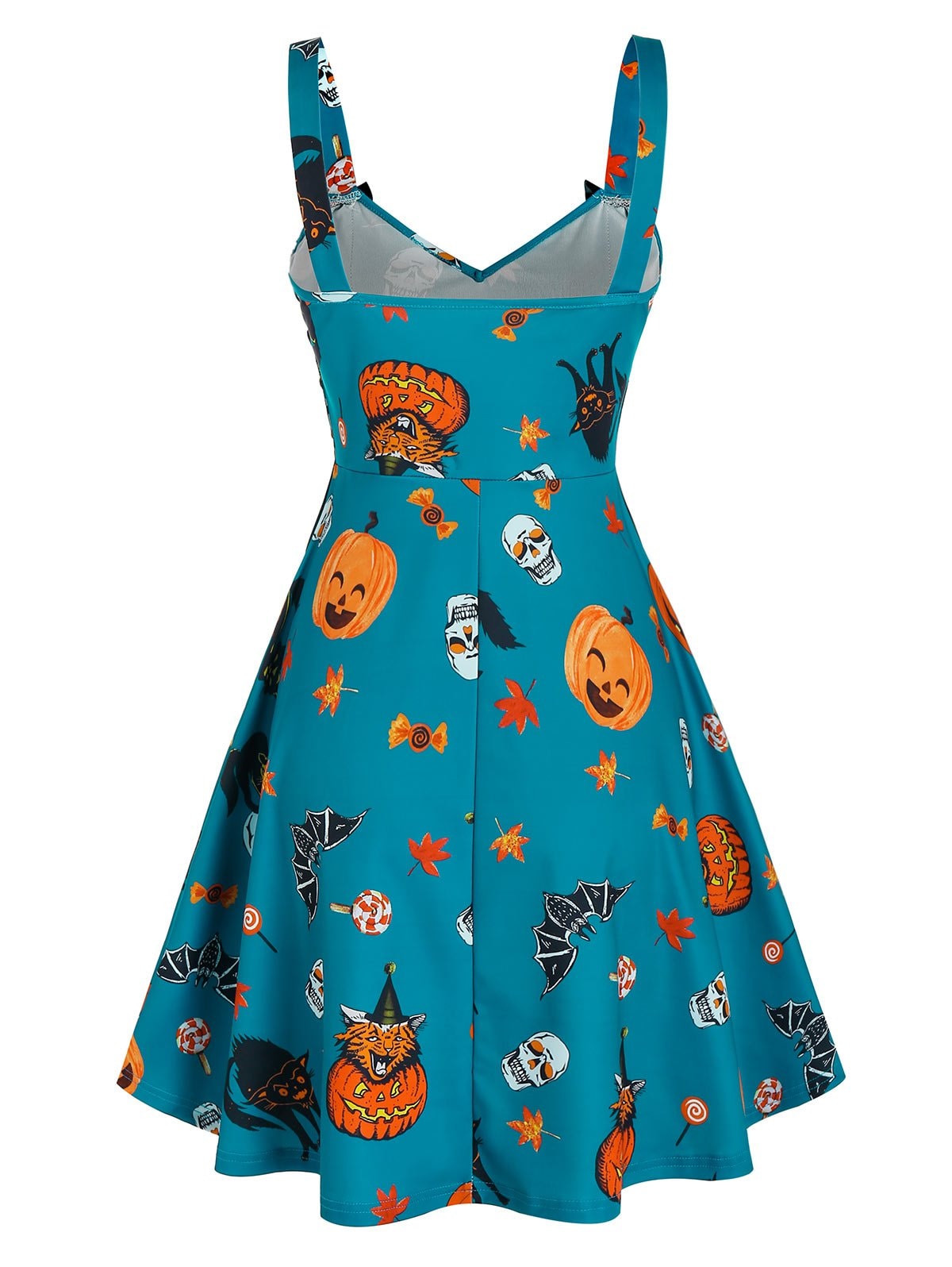 Halloween Pumpkin Print Lace Up Cami A Line Dress