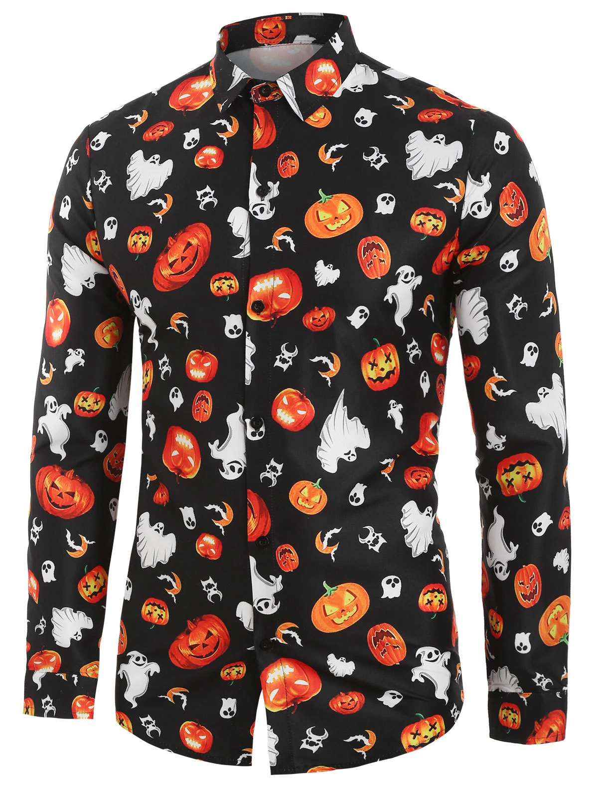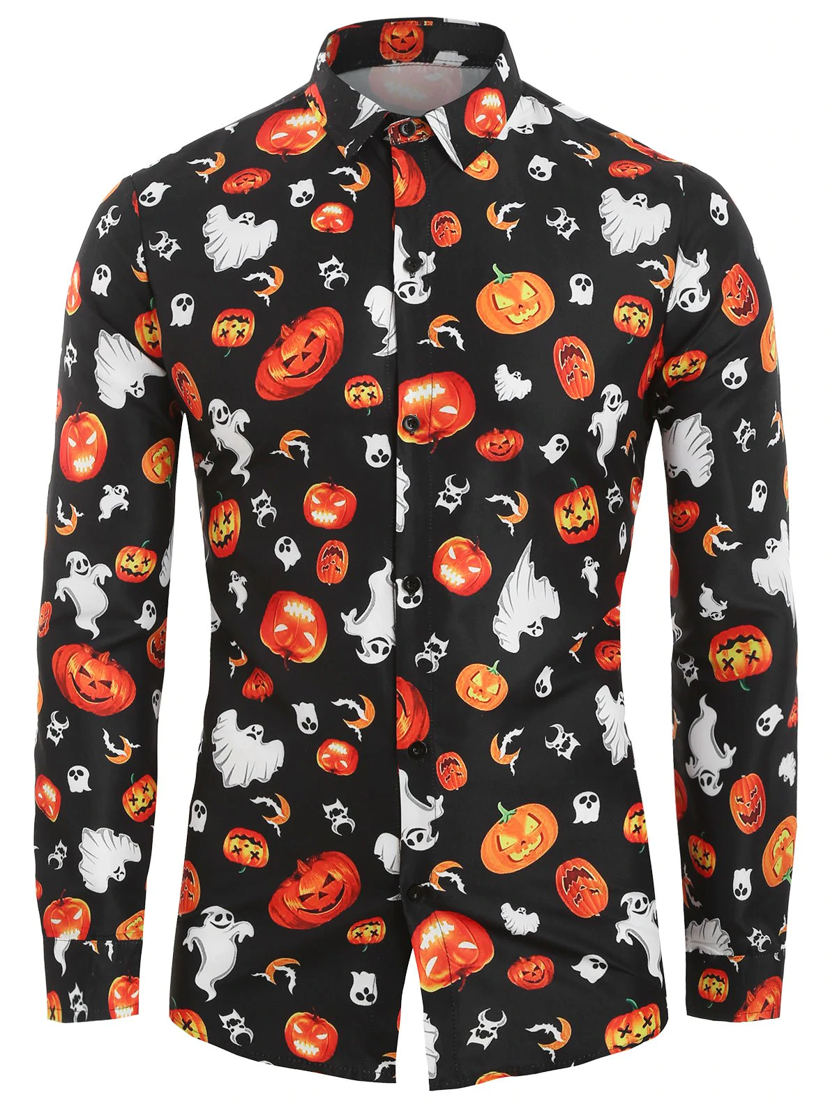 Halloween new men's pumpkin printed long-sleeved shirt, simple and generous style, style personality.